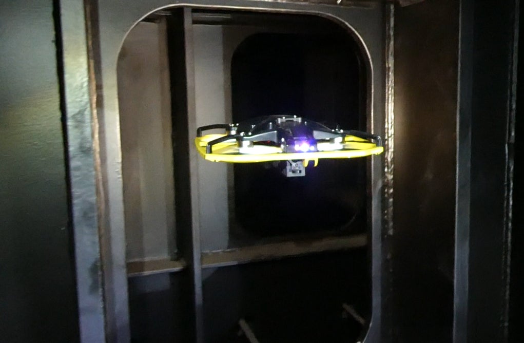 IBIS2はおもに屋内の狭所空間を飛行することを想定して作られたドローンです。しかし、高速道路の点検では、橋の周辺や水路ボックスといった屋外で飛行させることがほとんど。そのため屋外でもIBIS2を安定して飛行させるために、会議室にサーキュレーターを設置して、風の中でも安定して飛ばせるようになるための訓練も行っています。「水路ボックスのような囲われた環境でも風が入ってくることがある。そこで、風の中でもコンクリート表面のヒビ割れを追えるように、点検支援技術チームでは風速3メートル毎秒の環境でも飛行できる練習をしている。こうした訓練を積むことで自信を持つことができ、結果として正確な点検ができるようになる」(南氏)といいます。