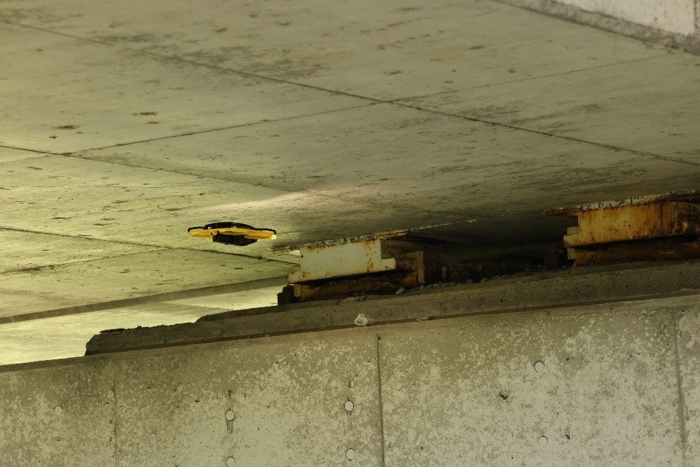高速道路の保全点検を担うネクスコ・エンジニアリング北海道の保全企画課では、2023年頃からドローンを試験的に導入。当初は一般的な小型ドローンを使い始めましたが、実際に点検用途で飛行させてみると、小型ドローンが入れない場所があり、そこには人が入って点検を行っていました。「中空床版橋という橋があり、その端部を支える支承部(橋桁を支える台座)はわずか20cmの隙間しかないところもある。そこに人が潜り込んで支承を点検するが、ヘルメットも挟まってしまうような狭さで、作業員の身体的な負担が大きかった」(南氏)といいます。また、橋のほかの部分の点検で小型ドローンを使ったとしても、こうした小型ドローンが入れない箇所を人が点検していては、結局橋梁点検車を使うことになり、橋の上にある道路の規制は行わなくてはなりません。
