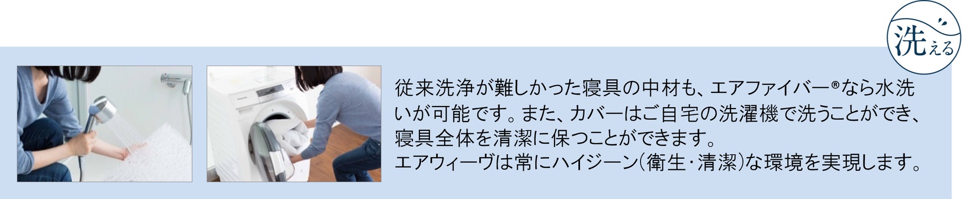 エアウィーヴは独自の製品特性を活かし、安心・清潔なリユース・リサイクルを促進することで、今後も廃棄物削減に努めてまいります。