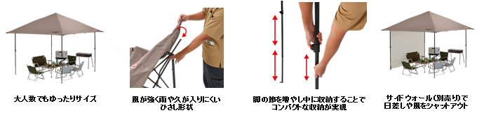 ■フレームを開くだけの簡単設営「インスタント バイザーシェード II/L (グレージュ)」
