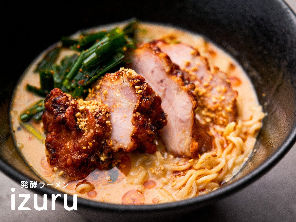 発酵を取り入れた「健康を邪魔しないラーメン」を提供する「発酵ラーメン izuru」で、発酵チキンが乗った「チキンパイコー麺」をGWまでの期間限定で販売開始!