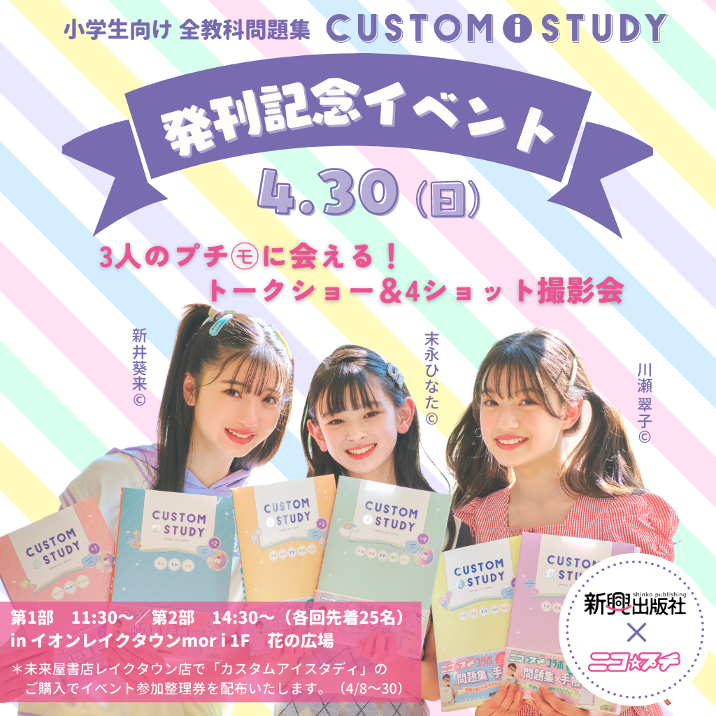 【ニコ☆プチモデル トークショー&撮影会】4月30日(日)小学生向け全教科問題集「カスタムアイスタディ」発刊記念イベント開催