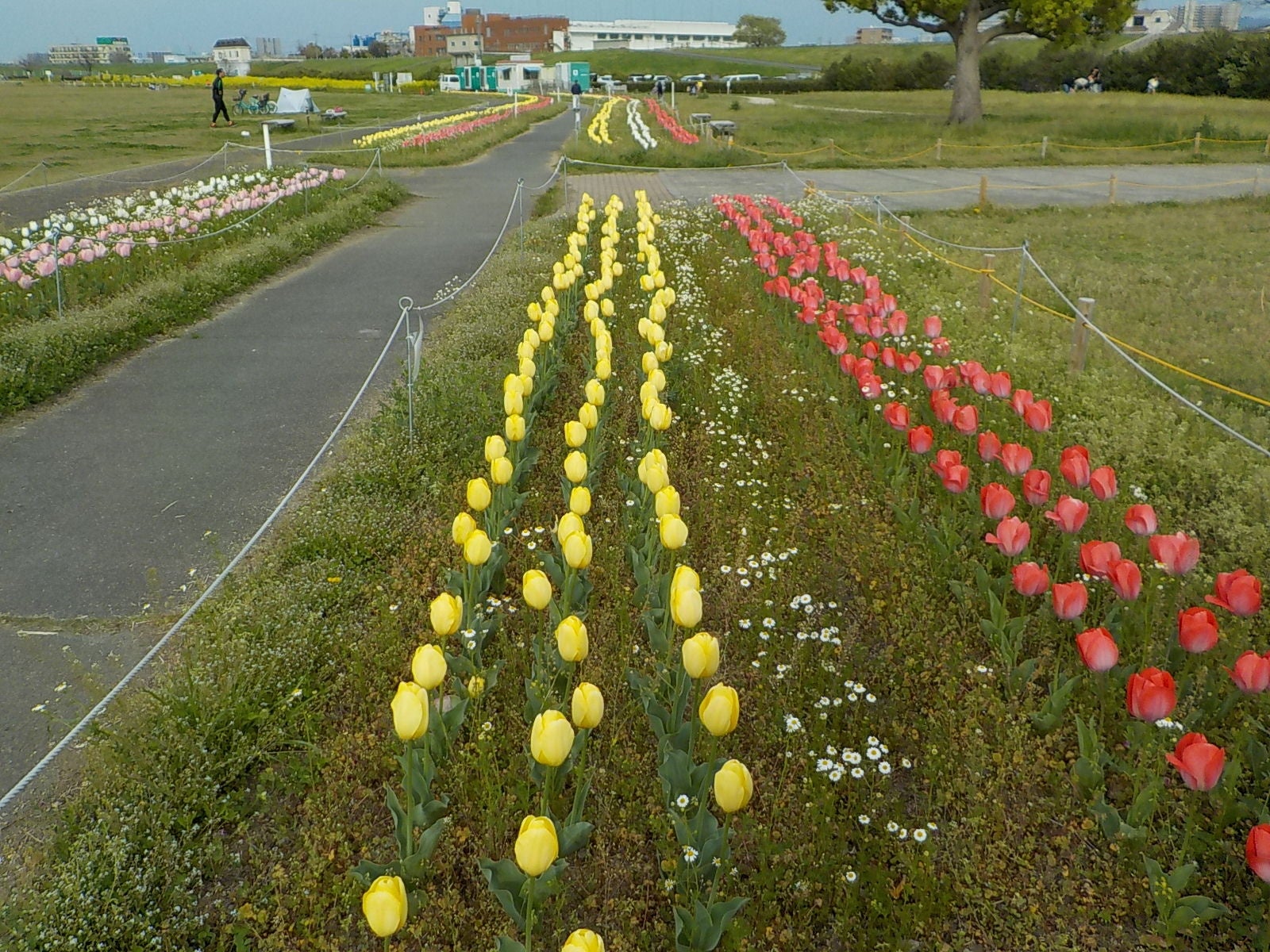 チューリップ・ナノハナが見ごろを迎えております。(淀川河川公園)