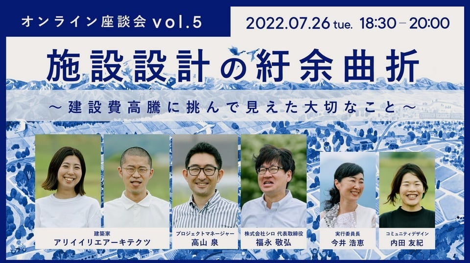 【SHIRO みんなのすながわプロジェクト】みんなの工場「施設設計の紆余曲折」〜建設費高騰に挑んで見えた大切なこと〜をテーマに第5回オンライン座談会を開催しました。