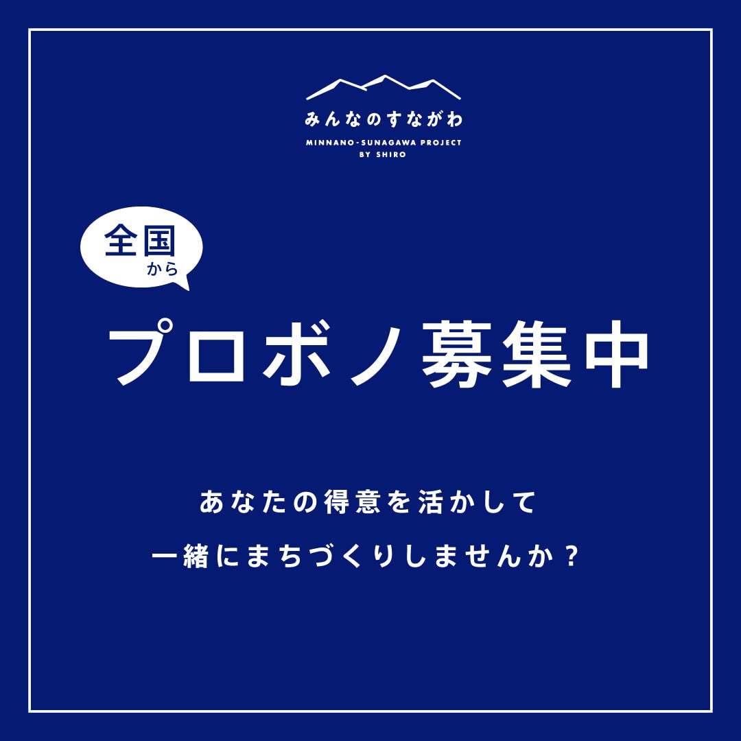 みんなのすながわプロジェクトでは、全国からプロボノやボランティアスタッフを募集しています。