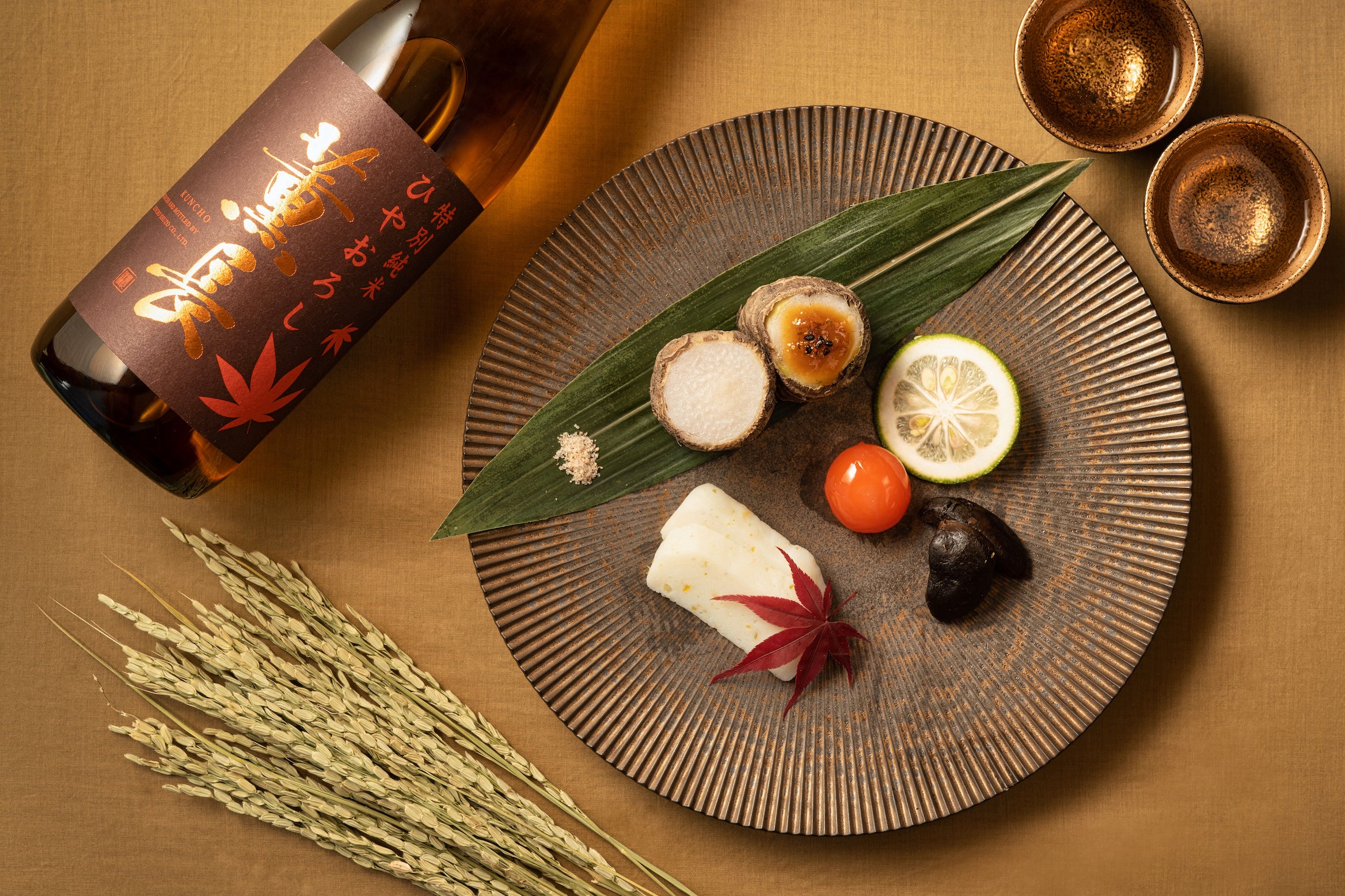 夜になり高い空に月を見上げる時間には、月見のお供として月見酒とおつまみを提供します。月見酒には、大分県日田市「クンチョウ酒造」の秋限定ひやおろし。おつまみには、大分県が日本一の生産量を誇るかぼすや干し椎茸の他、芋名月にちなんだ衣かつぎは、かぼすを使用した味噌やかぼす塩と共に味わいます。