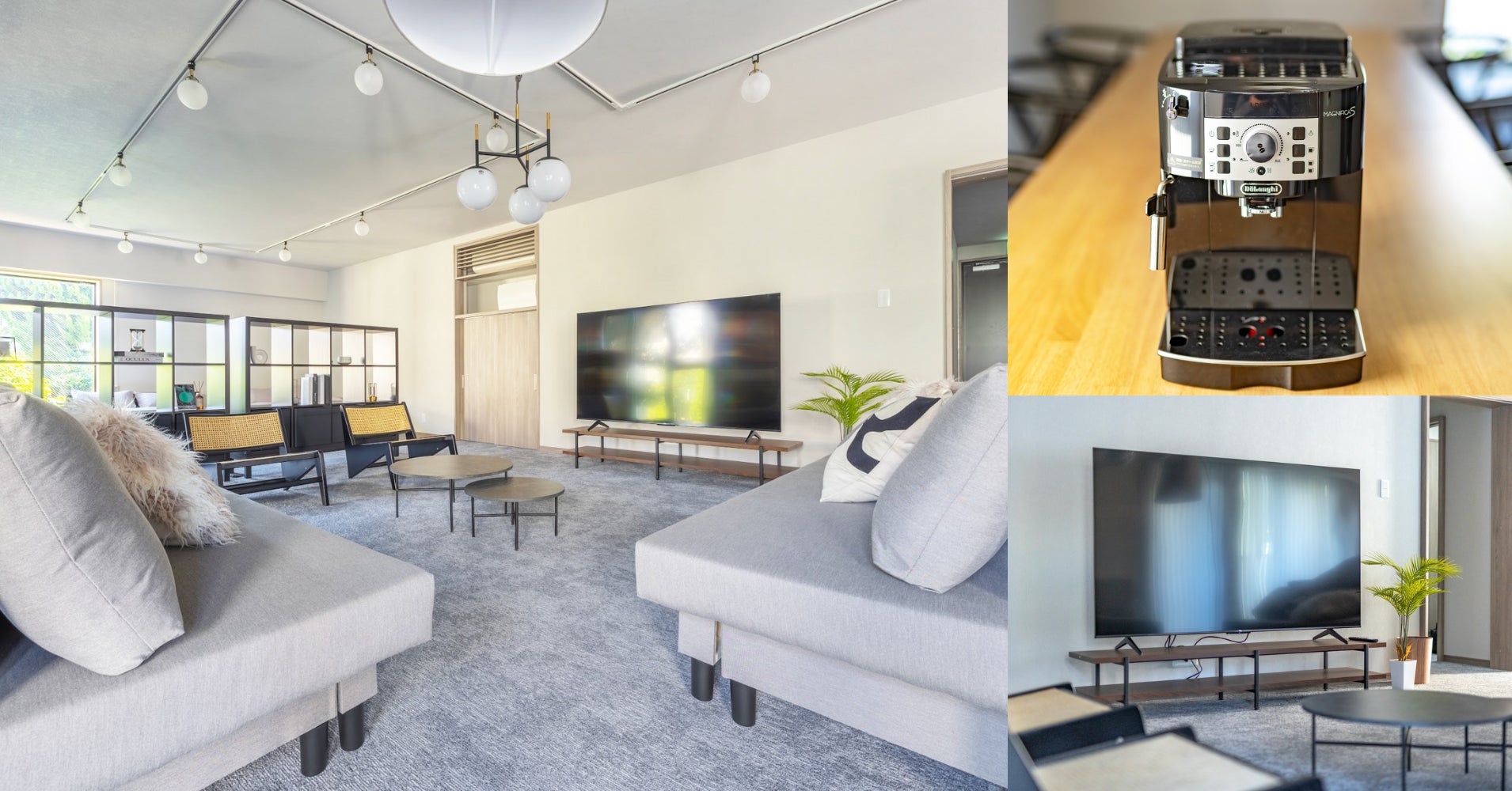 各部屋に大画面75インチのテレビ、ダイニングテーブル、ソファーをご用意しており、大人数で映画などをお楽しみいただけます。またホテルステイならではの「鎌倉の朝」を体感していただけるよう、90㎡のデラックスレジデンシャルルームには人気メーカーの全自動コーヒーマシンを設置。コーヒー豆は鎌倉に根差したものを選定し、一日のはじまりを彩ります。