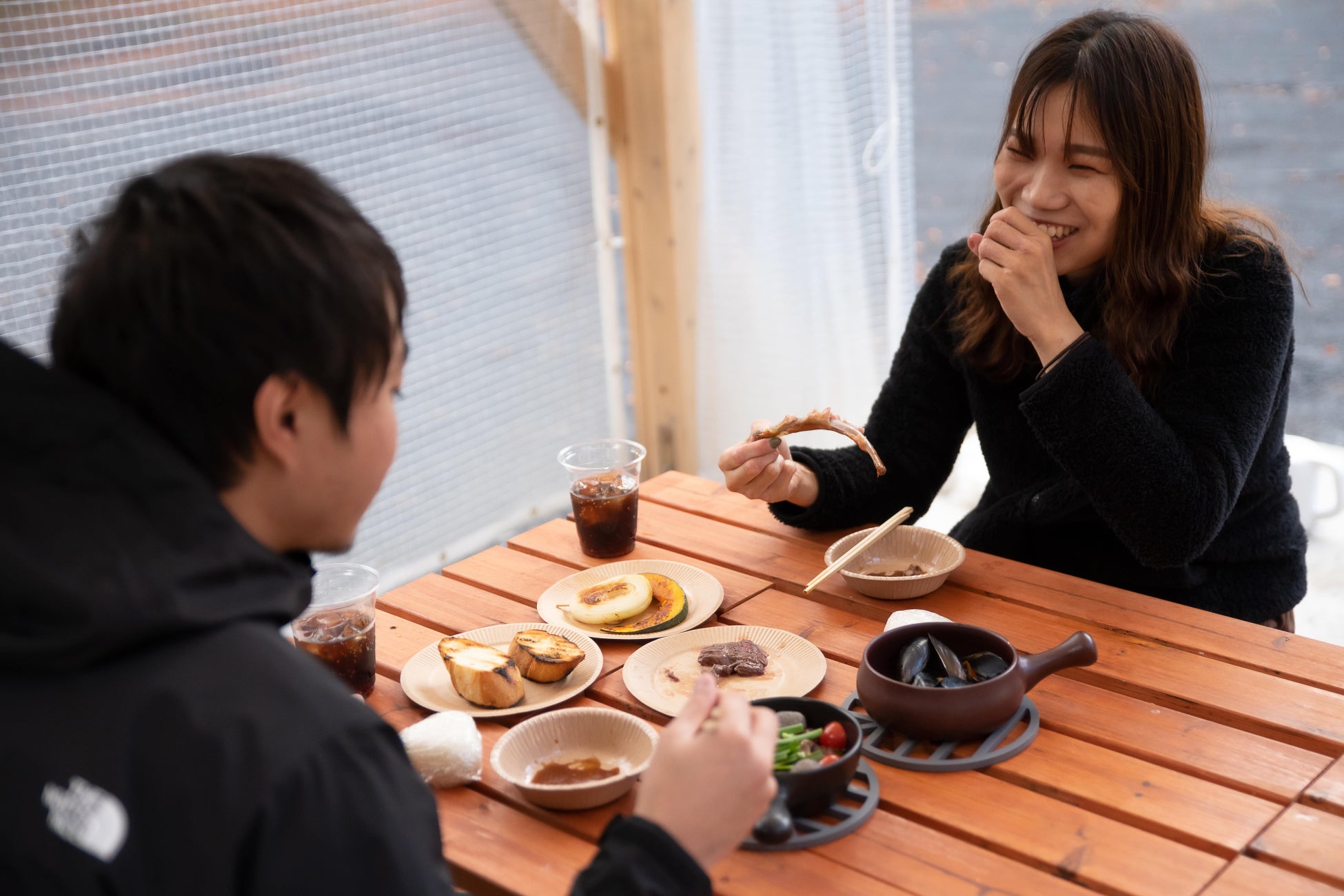 着火・準備・片付けなどは全てスタッフが行うため、はじめての方でも無理なくお楽しみいただけます。調味料・お皿もすべて用意しているため、事前に食材や食器を持ってくる必要もありません。