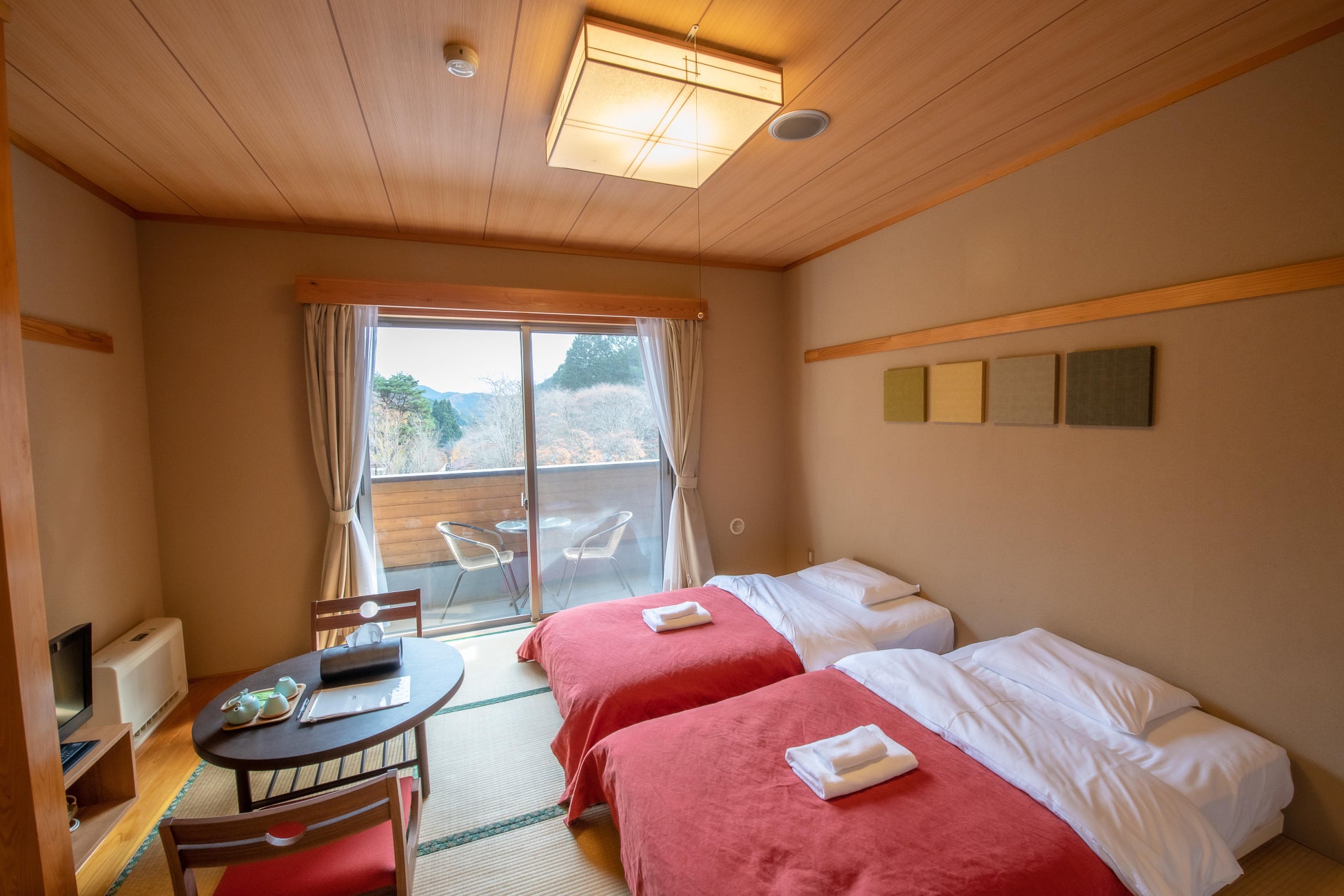 また、3タイプすべての客室に冷暖房が完備されているため、どの客室でも季節問わず、快適にお過ごしいただけます。