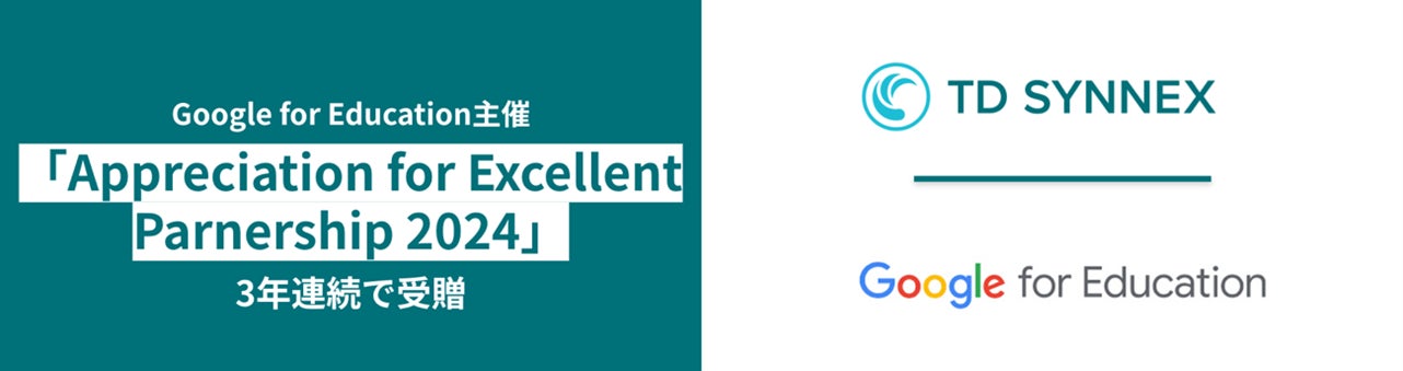 TD SYNNEX株式会社(本社:東京 代表取締役社長:國持重隆、以下「TD SYNNEX」)は、Google for Education より、感謝状「Appreciation for Excellent Partnership 2024」を3年連続で受贈しました。