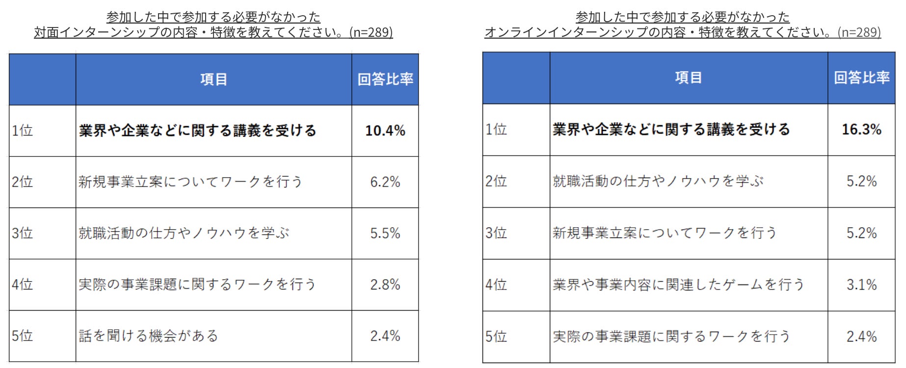 ・「業界・企業に関する講義」のコンテンツは不人気。事前にリサーチ可能な内容は、インターンシップに求めていない。