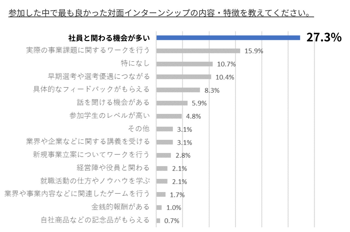 ・27.3%の学生が「社員と関わる機会が多い」対面形式のインターンシップを高く評価