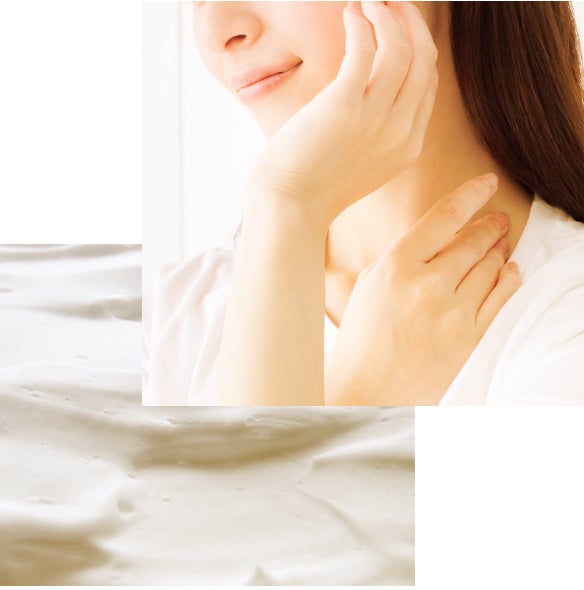 乾燥から肌を守り、肌の水分を逃がさないように保護し、うるおいのあるなめらかなお肌へ導きます。サナギタケエキス、スクワラン、グリチルレチン酸、ローヤルゼリーエキス、ヒアルロン酸、PCAなど有効成分を配合。べとつきがなく、自然のしっとりした素肌を感じさせます。
