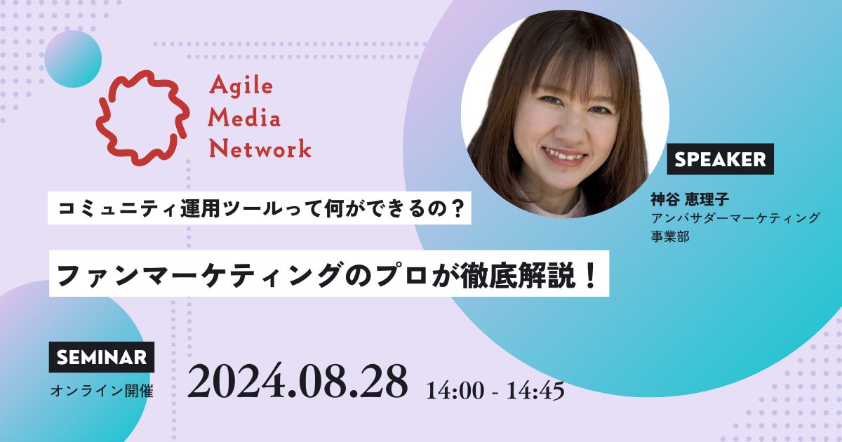 『世界中の“好き”を加速する』をビジョンに掲げ、ブランドのファン育成・活性化を手がけるアジャイルメディア・ネットワーク株式会社(本社:東京都港区、代表取締役社長:寺本直樹、東証グロース上場:証券コード6573、以下AMN)は、このたびオンラインセミナー『コミュニティ運用ツールって何ができるの?ファンマーケティングのプロが徹底解説!』を開催いたします。