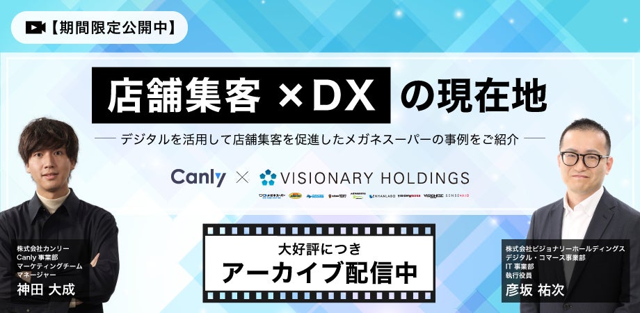 【2週間限定見逃し配信】ビジョナリーホールディングス執行役員 彦坂氏と語る『店舗集客×DXの現在地〜デジタルを活用して実店舗への来訪・購買を促進し成果を上げるには〜』を期間限定で無料配信!