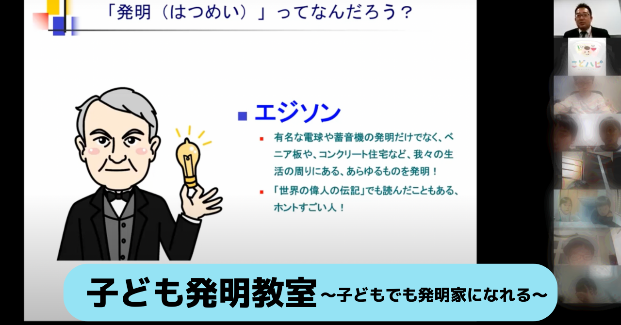 【オンライン子ども大学「こどハピ」:オンライン授業報告】一般社団法人 発明学会 事務局長 松野泰明氏が講師となり「発明王になろう!子ども向けの発明教室」の授業開催のお知らせ