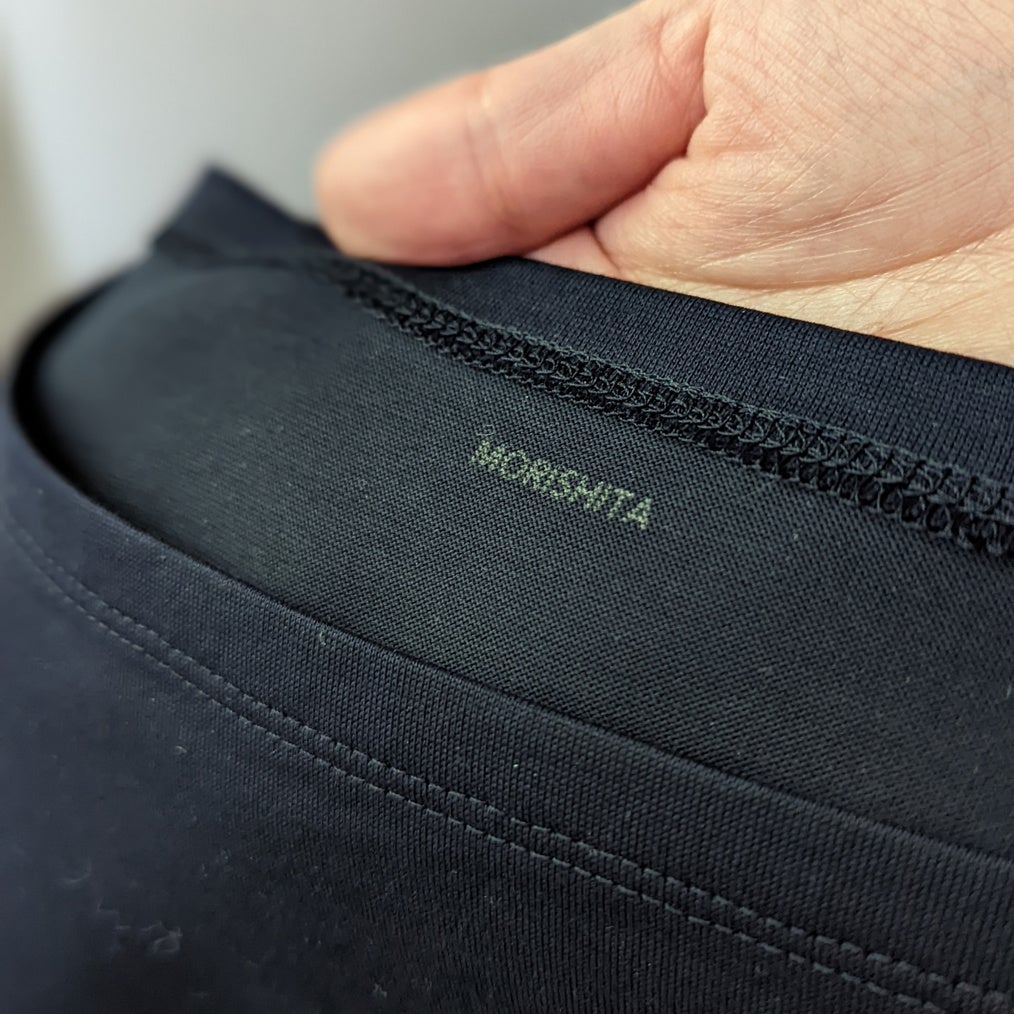 そこから今まで加工してきたさまざまな仕上げの中からこの企画に合う仕上げを選びました。カジュアル過ぎない大人な光沢とハリコシのある生地で、でも今のトレンド感のナチュラルな雰囲気も加えてかっちりしすぎない着心地で…ということで“光沢”+“滑らかな肌触り”になる加工を選びました。」(森下メリヤス・森下社長)