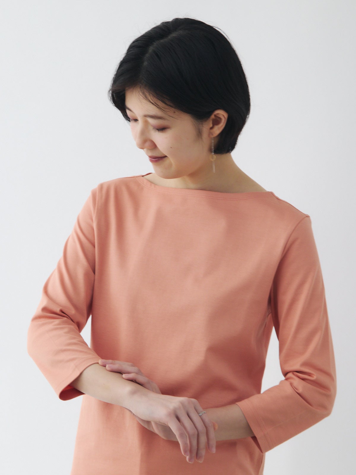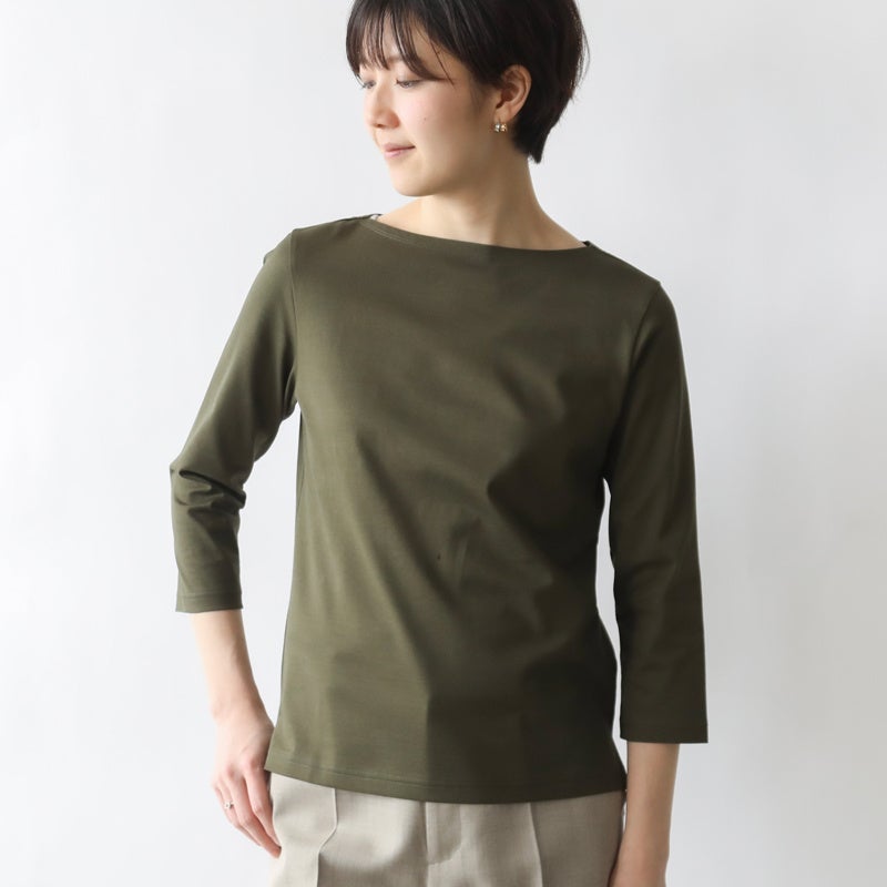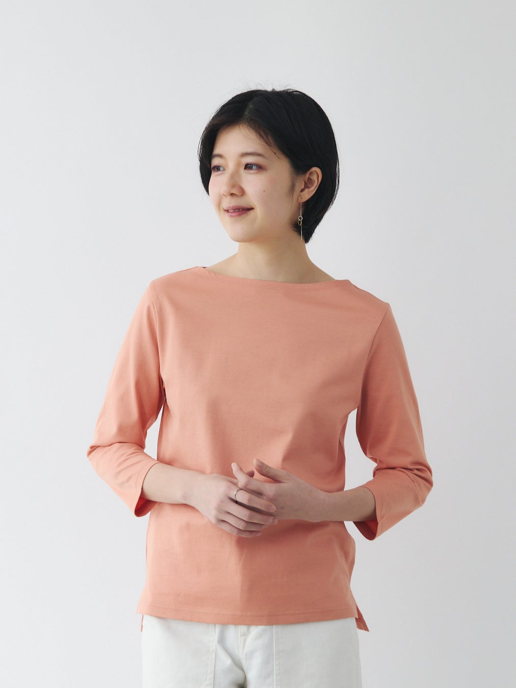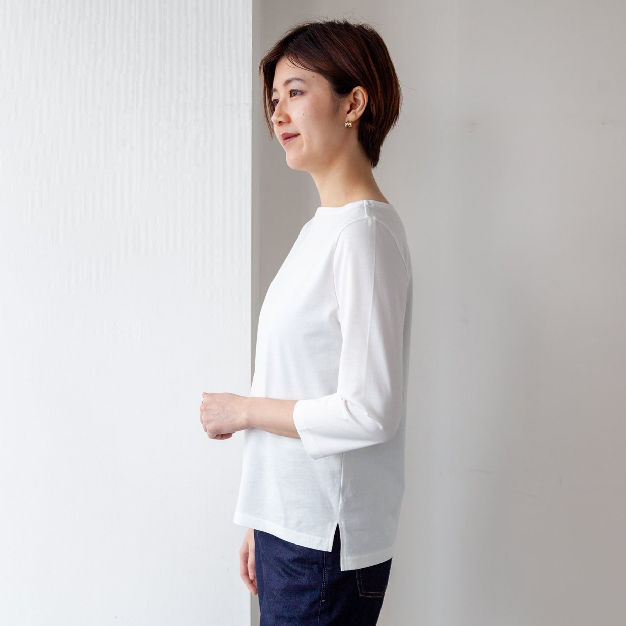 【上質コットン100%のドレスTシャツ/ボートネック七分袖】