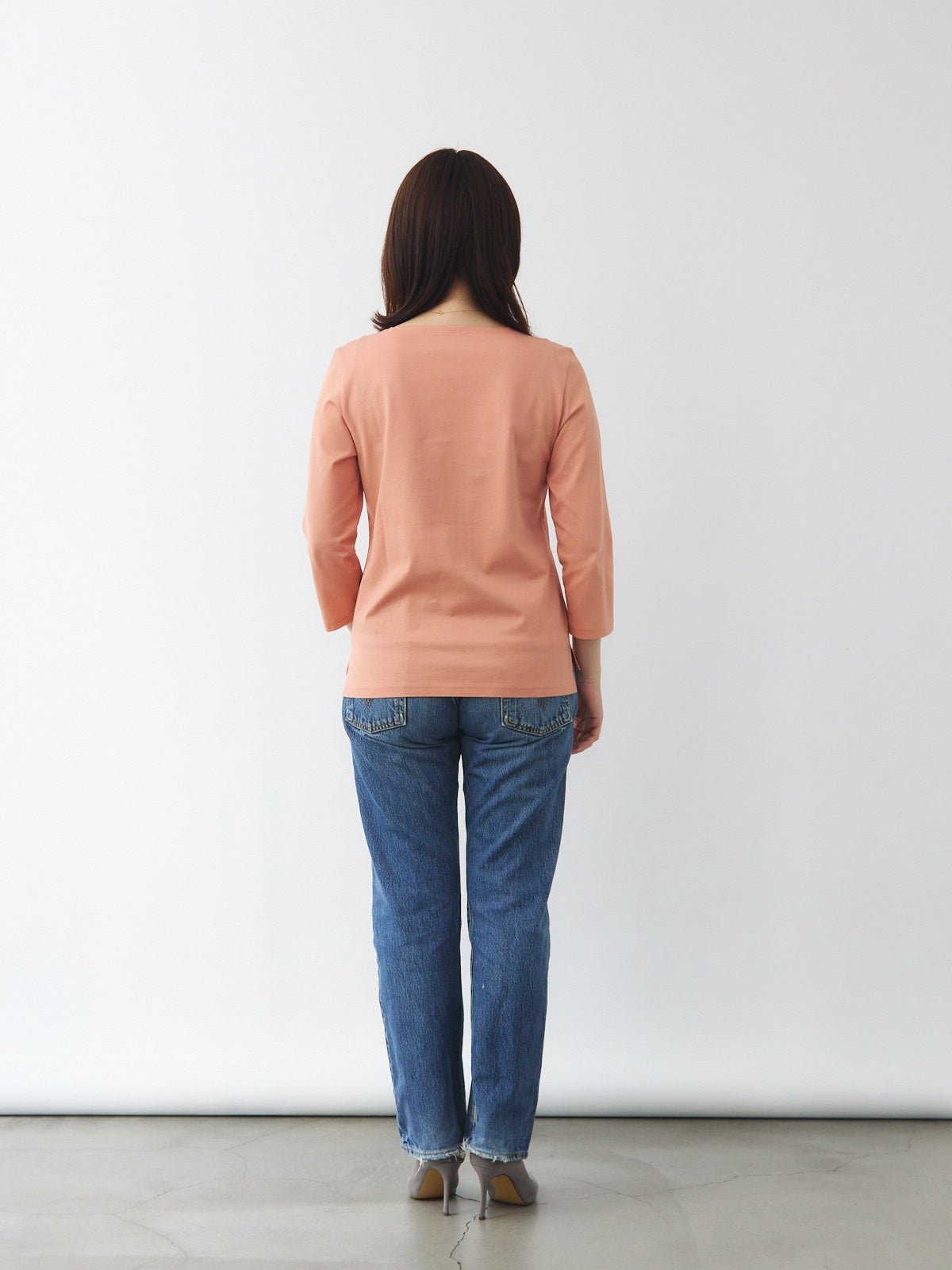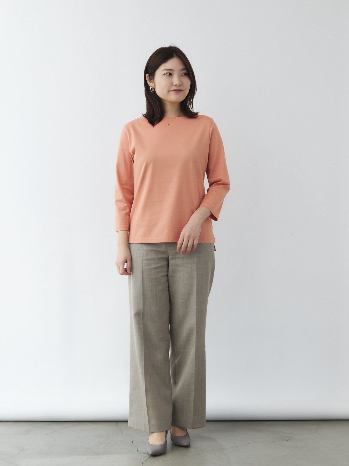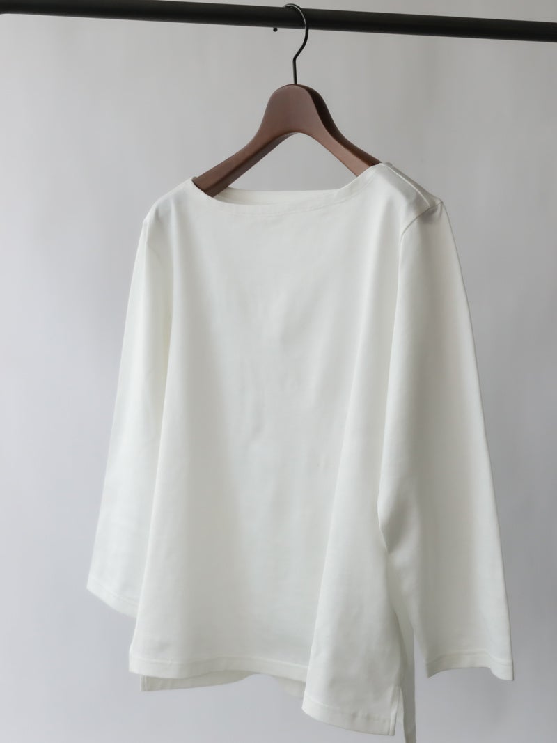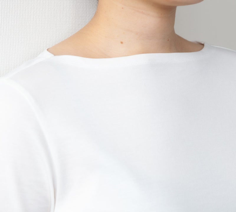 【上質コットン100%のドレスTシャツ/ボートネック七分袖】