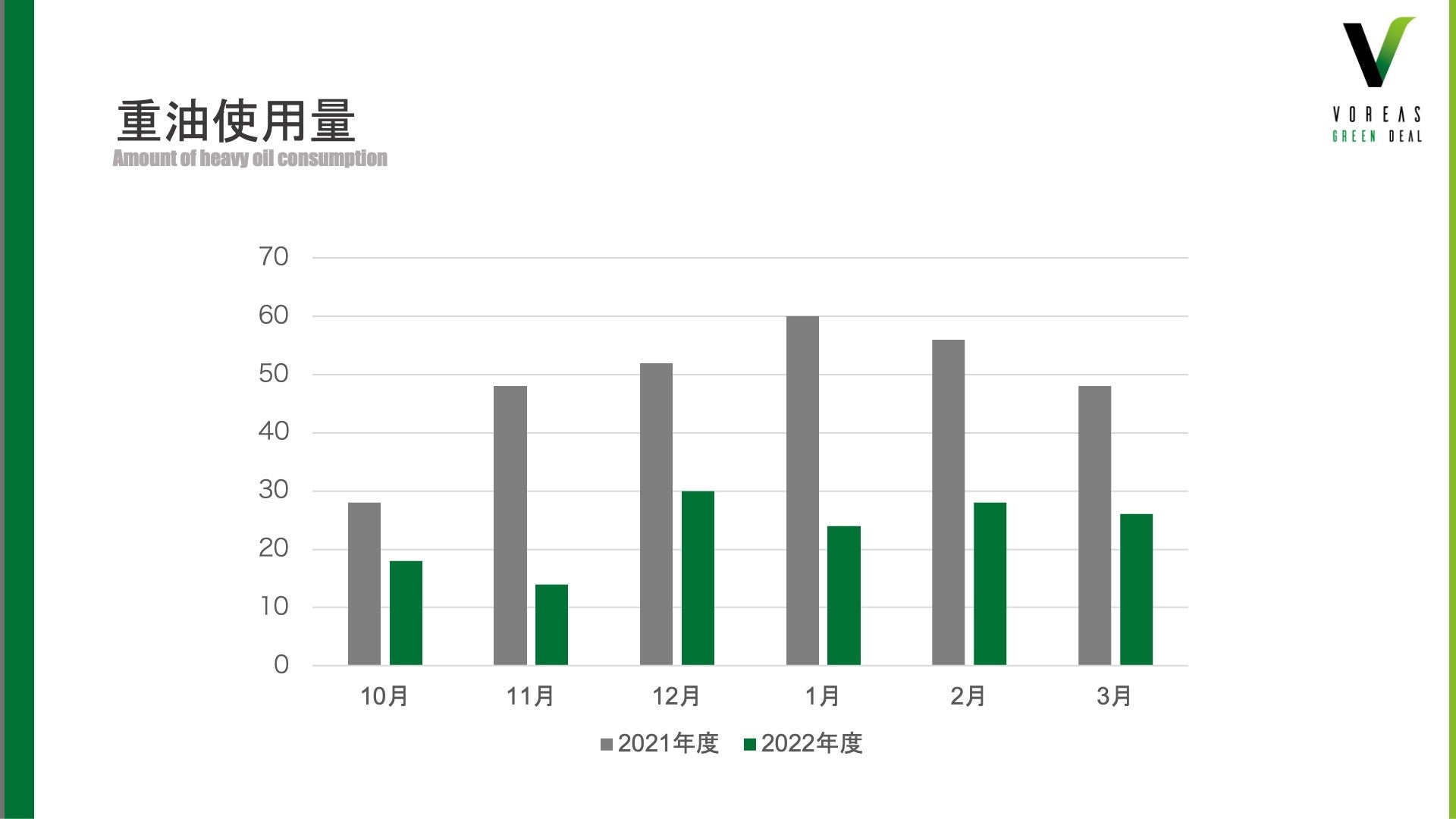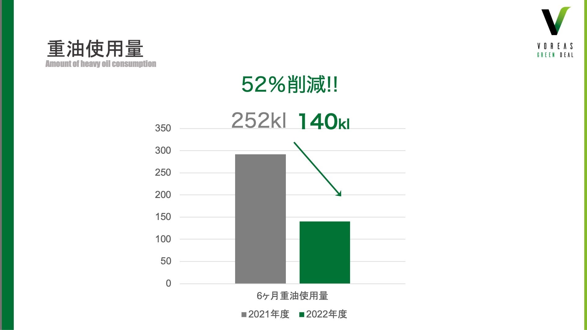 今回の導入により2022年10月〜2023年3月までの重油使用量は昨年比で52%減となりました。
