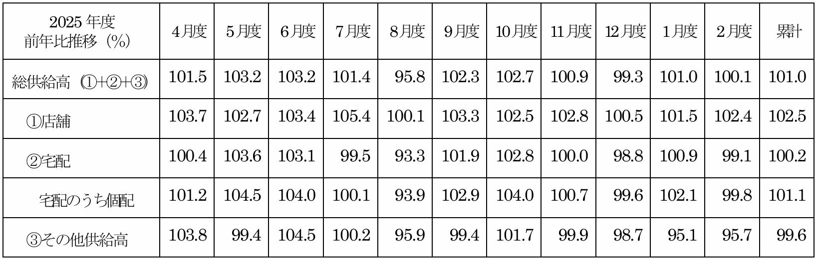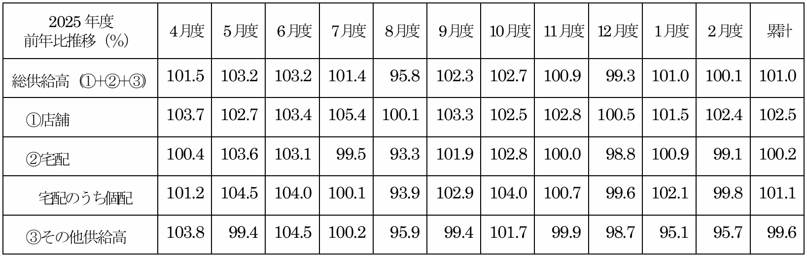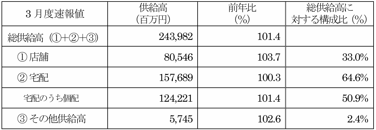 〇3月度の総供給高は、101.4%で前年超えとなりました。