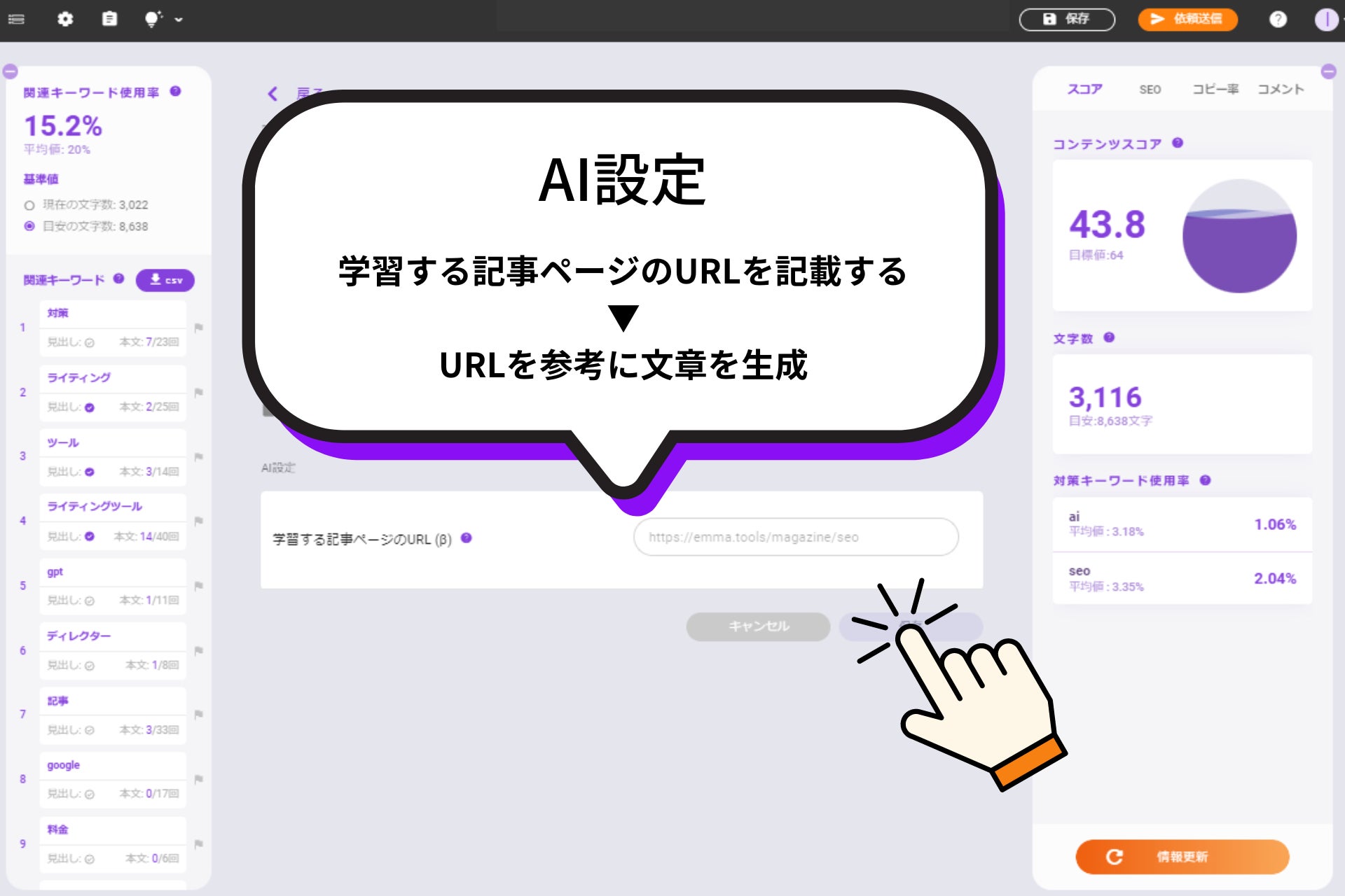 最先端のデジタルマーケティングとテクノロジーを追求するスタートアップである株式会社EXIDEA(本社:東京都墨田区、代表取締役社長 小川 卓真、以下当社、URL:https://exidea.co.jp/ )は、同社の生成AI×SEOライティングツール「EmmaTools(https://emma.tools/ )」において、URLを読み込んで事前学習した上で記事に反映できる機能をリリースしました。