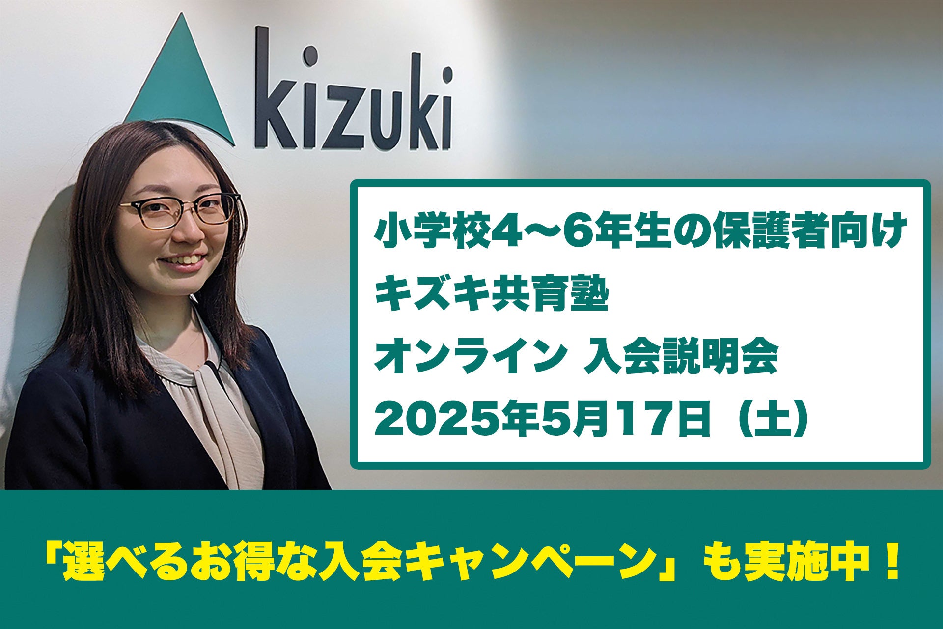 2025年5月17日(土)10時30分〜11時、そんな「キズキ共育塾」が小学校4〜6年生のお子さんがいる保護者さま向けに「無料オンライン説明会」を開催します!