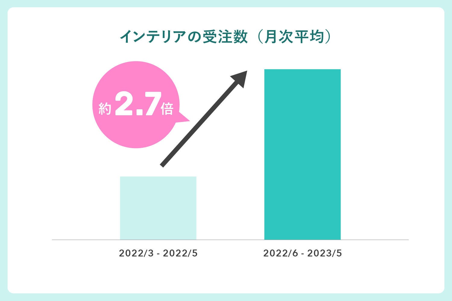 また、「ライフカタログ」では、物件購入時にカウカモが提案するインテリアを購入することもできます。「ライフカタログ」が始まったばかりのころと比べると、インテリアをカウカモで購入した月次の受注数は2.7倍に伸長しており、インテリアサービスも定着してきました。