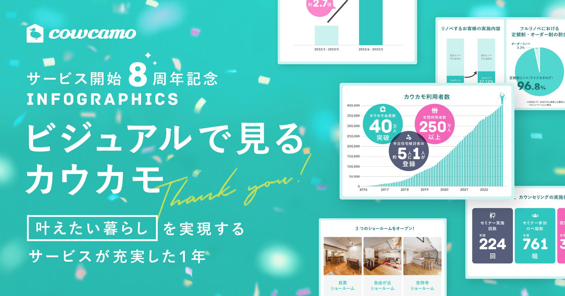 中古住宅の流通プラットフォーム「カウカモ」サービス開始8周年を記念して「ビジュアルで見るカウカモ」を公開