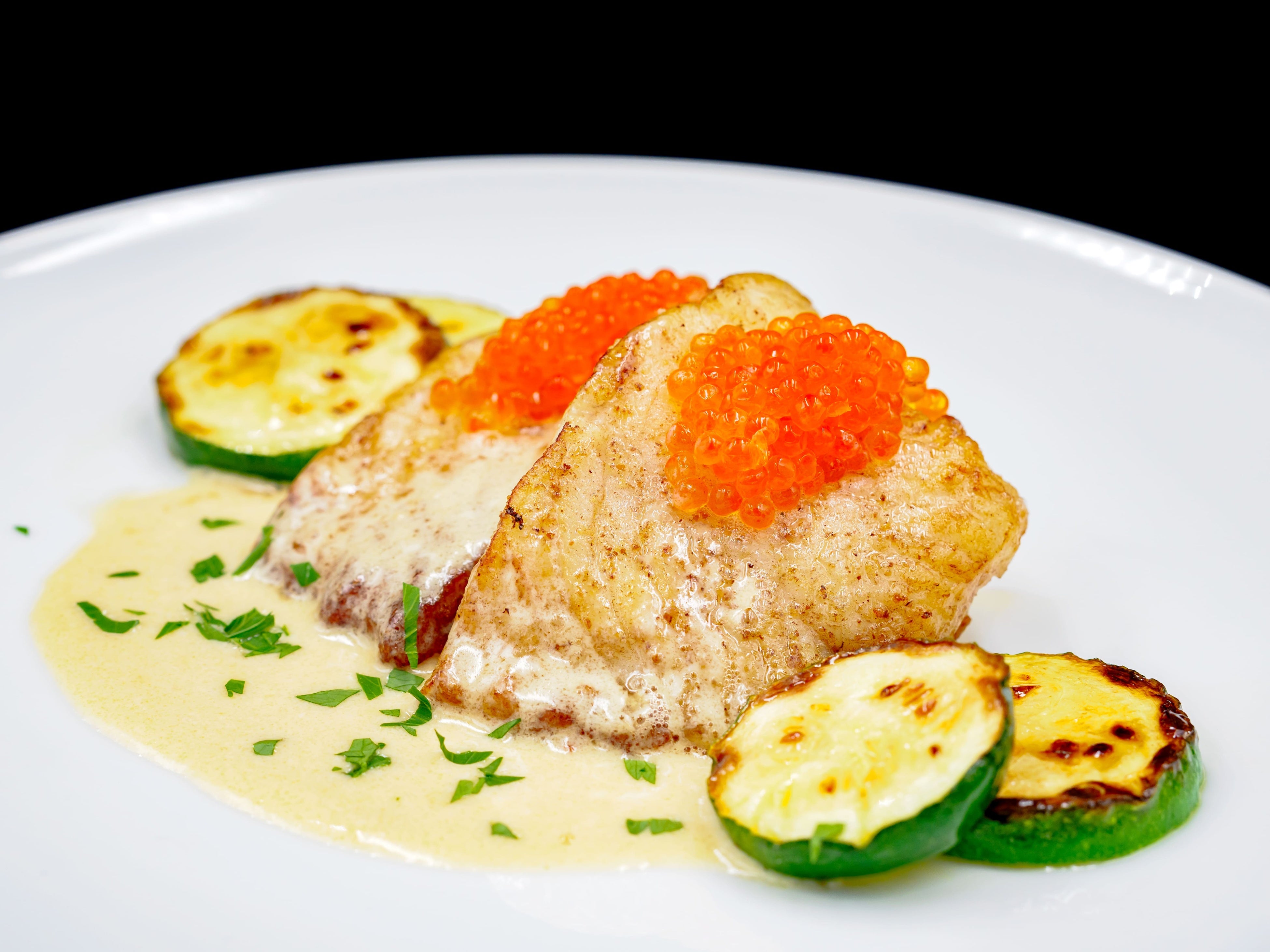 ヒラメのポワレ 白ワインソース フレンチキャビアのせ