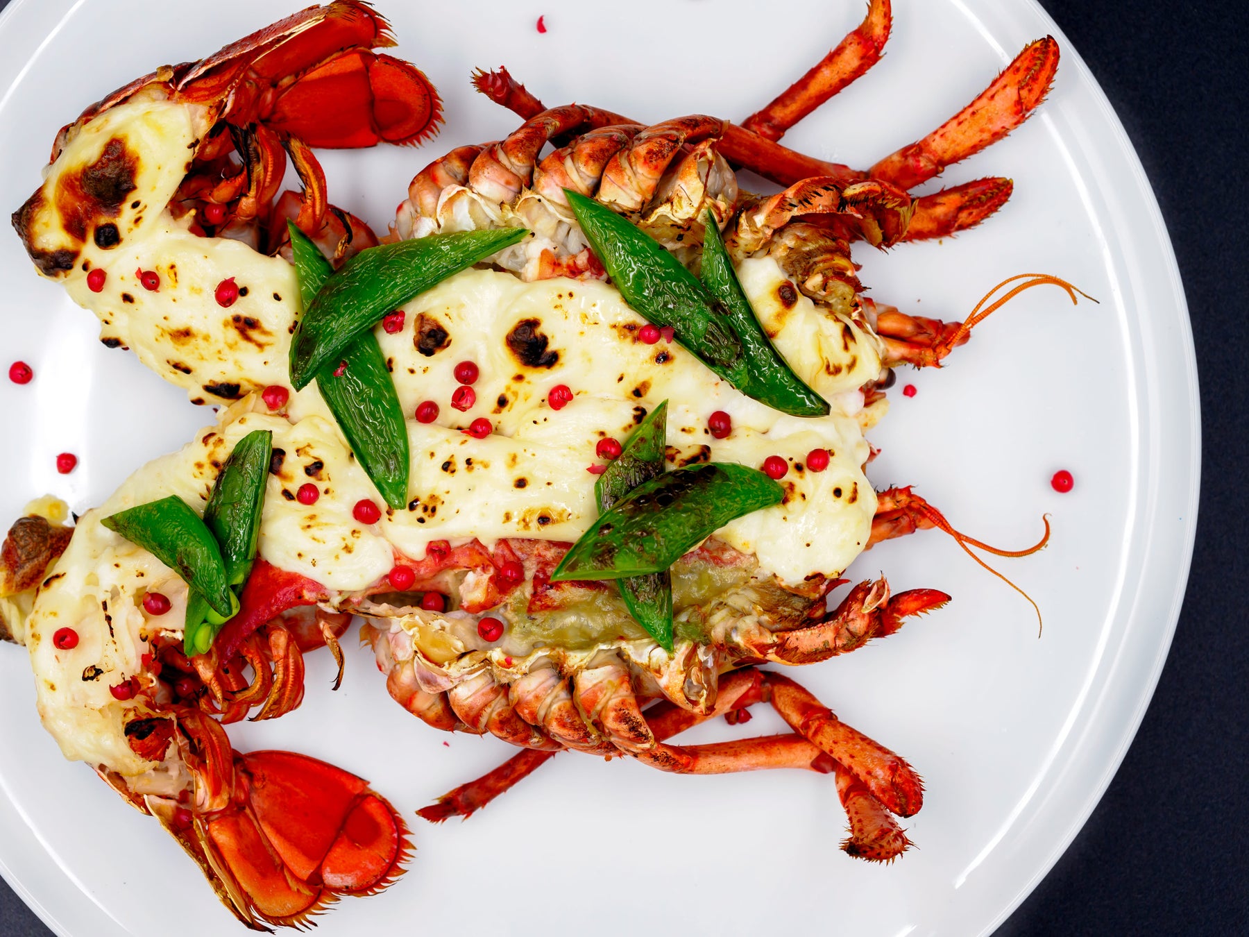 ロブスターを丸ごと一尾使用し、濃厚なクリームソースを乗せてこんがりと焼き上げました。