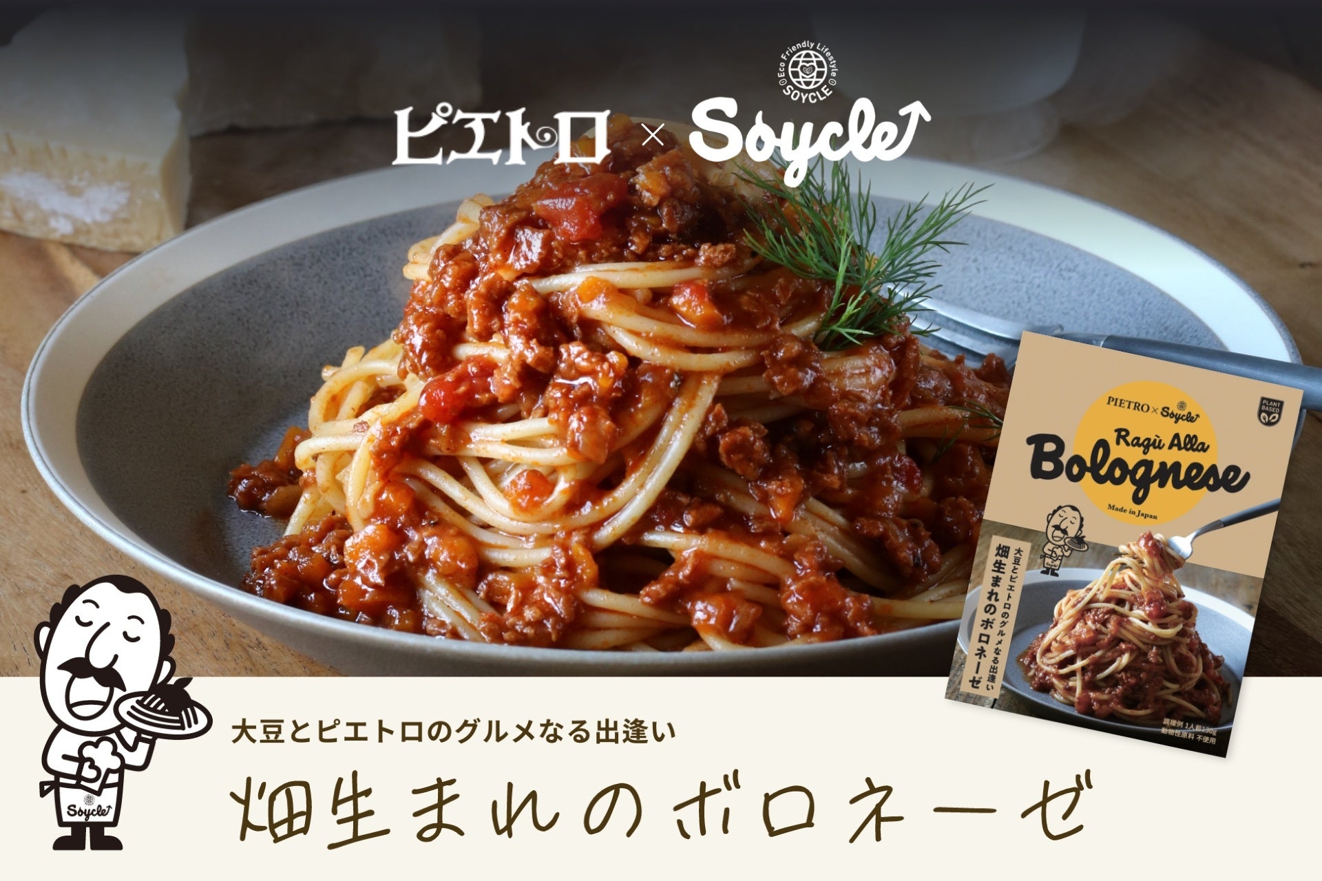 大豆ミートを使用した初のコラボ商品『ピエトロ×Soycle 畑生まれのボロネーゼ』を発売