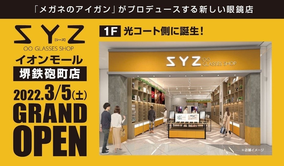 メガネのアイガンからニュースタイルショップが誕生!「あなたらしさを見つける」眼鏡店『SYZイオンモール堺鉄砲町店』2022年3月5日(土)OPEN!