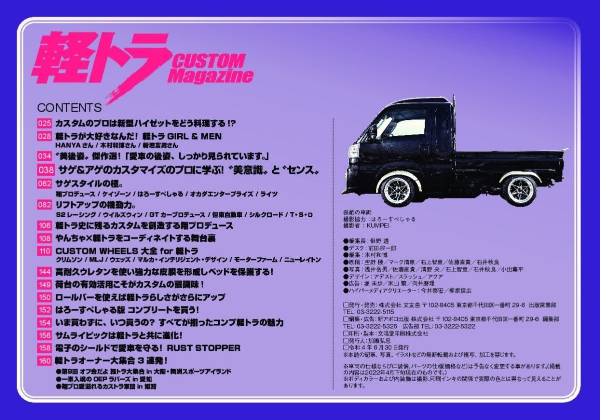 どこよりも早く軽トラのカスタム情報に注目し、以降約10年の長きにわたってそのホットかつクールな情報を網羅し続ける、唯一無二の特集ムック『軽トラカスタムマガジン』の第9弾が発売。