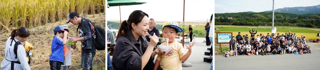 プレミアムウォーターが支援している水田では、地下への水の浸透を促し地下水保全活動に繋げるために、一年中お水を溜める農法でお米を栽培する「“地下水を守るん田"”活動」も支援しています。水田で収穫したお米を食べていただくことも地下水保全活動に繋がり、これまでも多くのお客様と一緒にこのイベントを通じて活動支援を実施してまいりました。