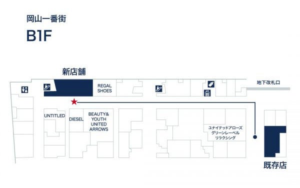 住所 : 〒790-0004 岡山県岡山市北区駅元町1-1-1岡山一番街地下2号