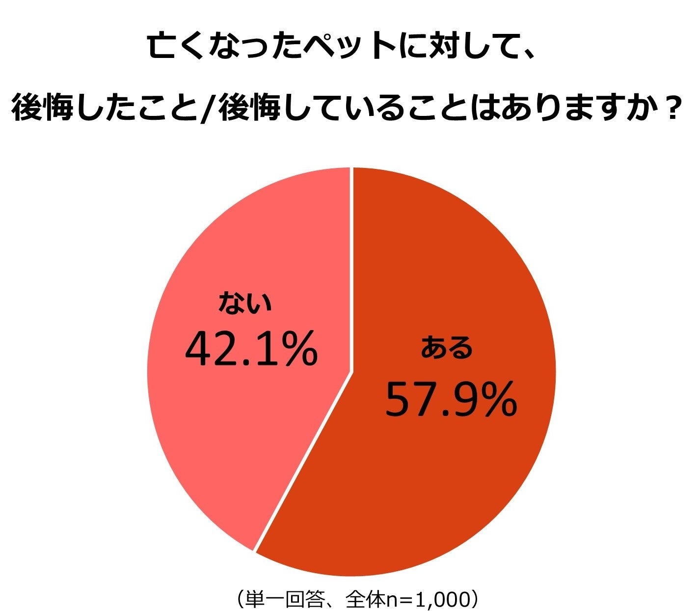 亡くなったペットに対して、後悔したこと/後悔していることはあるか尋ねたところ、約6割の方が「後悔していることがある」と回答しました。