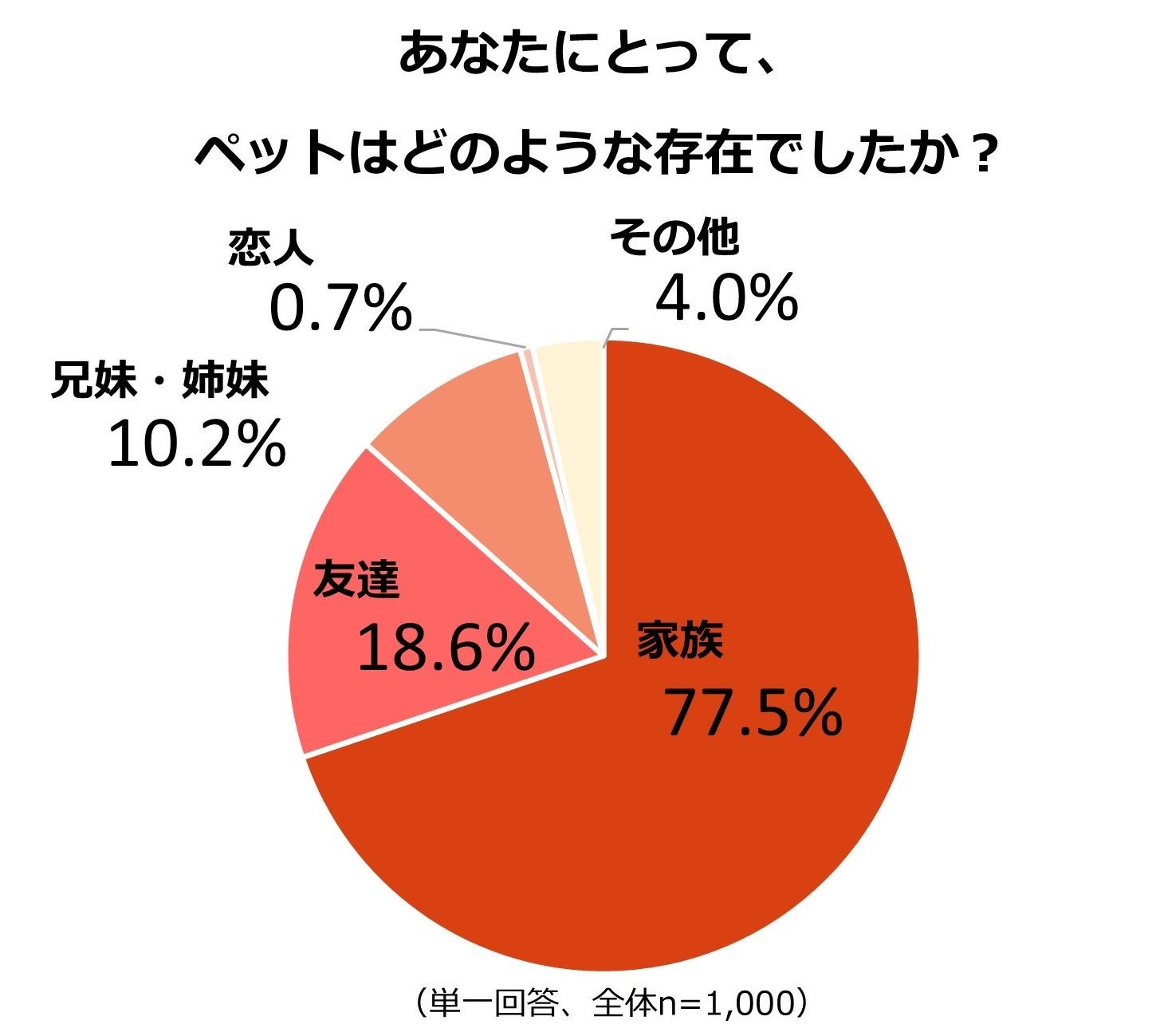 あなたにとってペットはどのような存在だったかを尋ねたところ、77.5%の方がペットを大切な家族と捉えていました。
