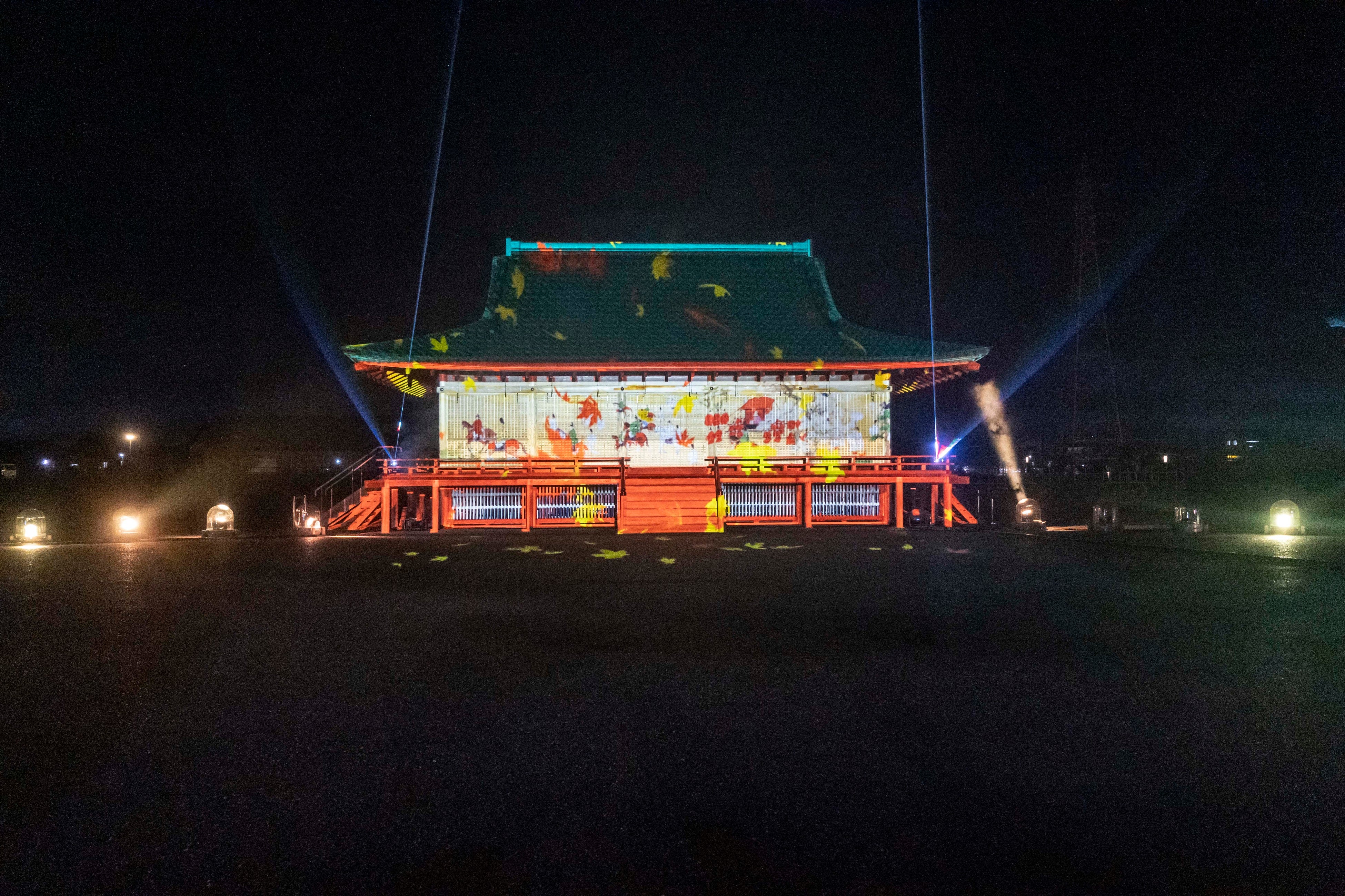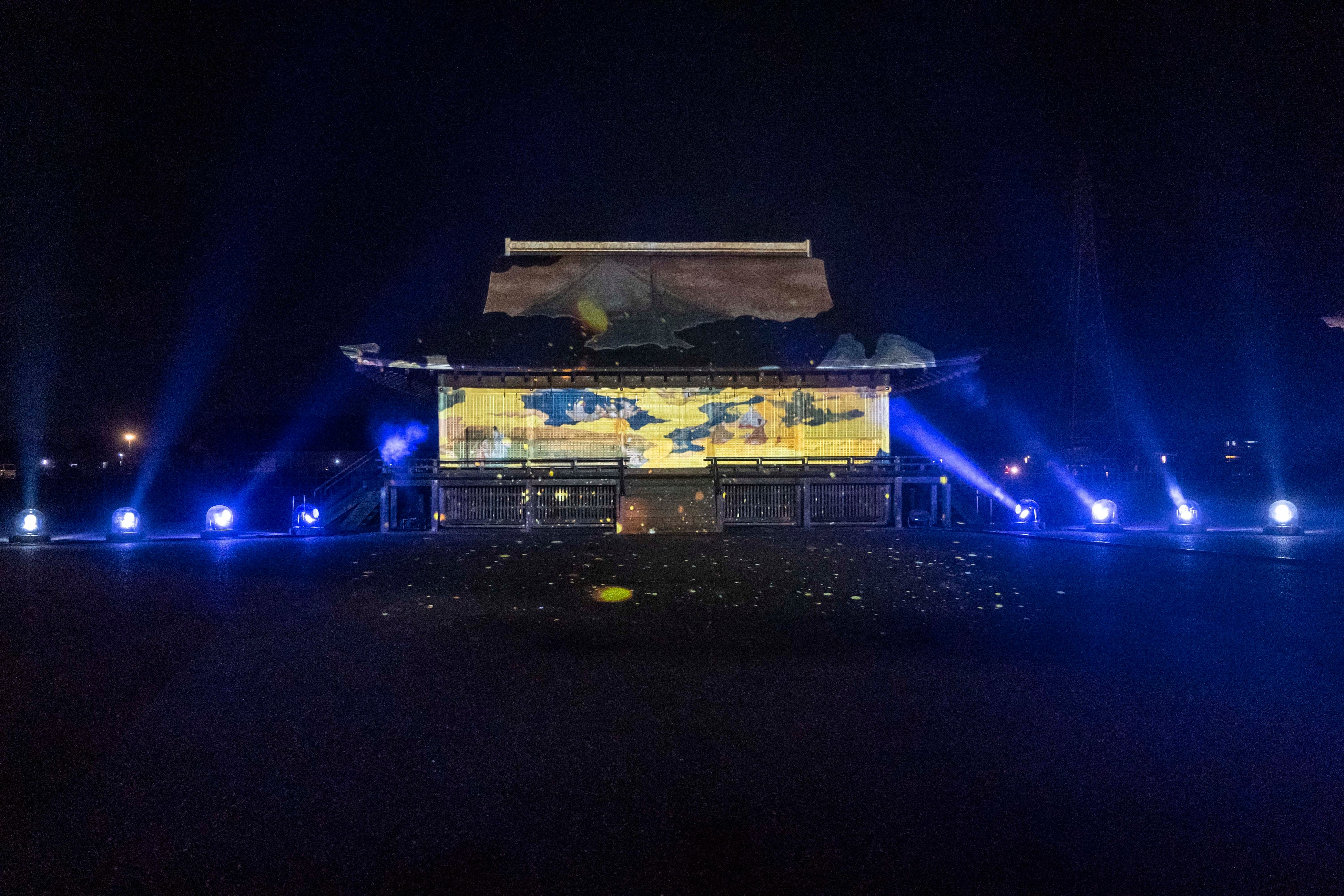 「斎王群行絵巻」「伊勢物語図屏風」「源氏物語絵巻」「十二単」など日本の文化芸術をモチーフとした絢爛豪華なデジタルアニメーションやきらびやかなデジタルアートなどのプロジェクションマッピング映像を投影。