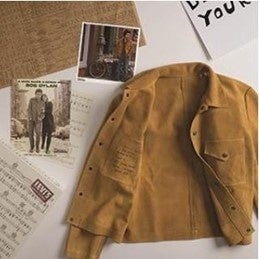 ディランのこのコーディネートを完成させるために、Levi's® Vintage Clothing チームは、ディランが 1960 年代初頭に 着用していたクラシックなスウェードのトラッカー・ジャケットをリメイクしました。このジャケットは、「A Hard Rain's A-Gonna Fall(はげしい雨が降る)」の楽譜、「Dig Yourself(ディグ・ユワセルフ)」のキューカード、ティモシー・シャラメが映画の中で、ジャケット、ジーンズ、ベルトを着用した写真が入った特別なボックスに入 っています。501®と同様、ジャケットの内ポケットには「A Complete Unknown」と書かれたコスチュームノートと、商品の衣装チェンジと登場シーンが記されています。