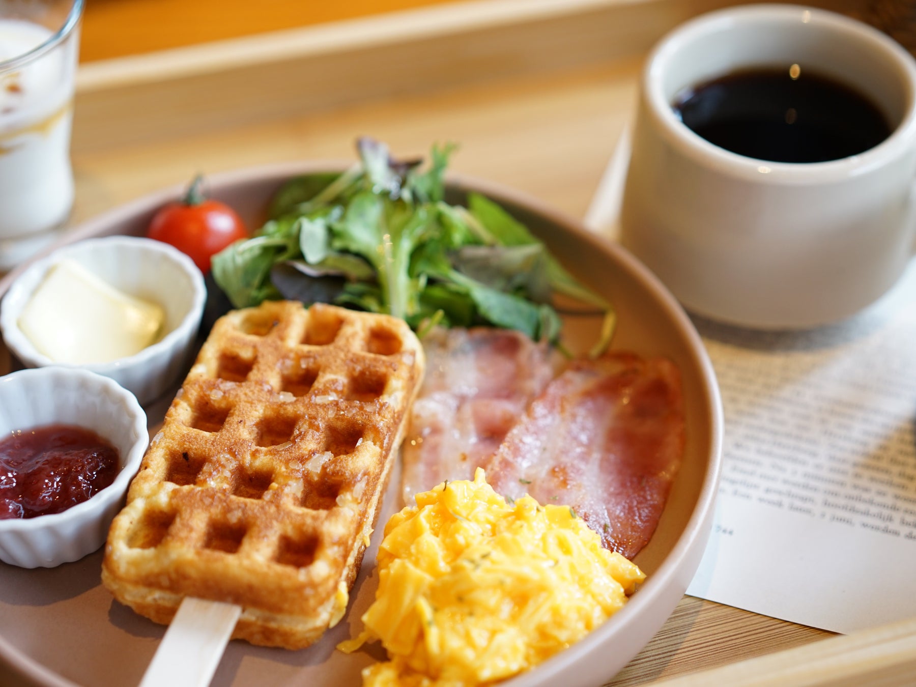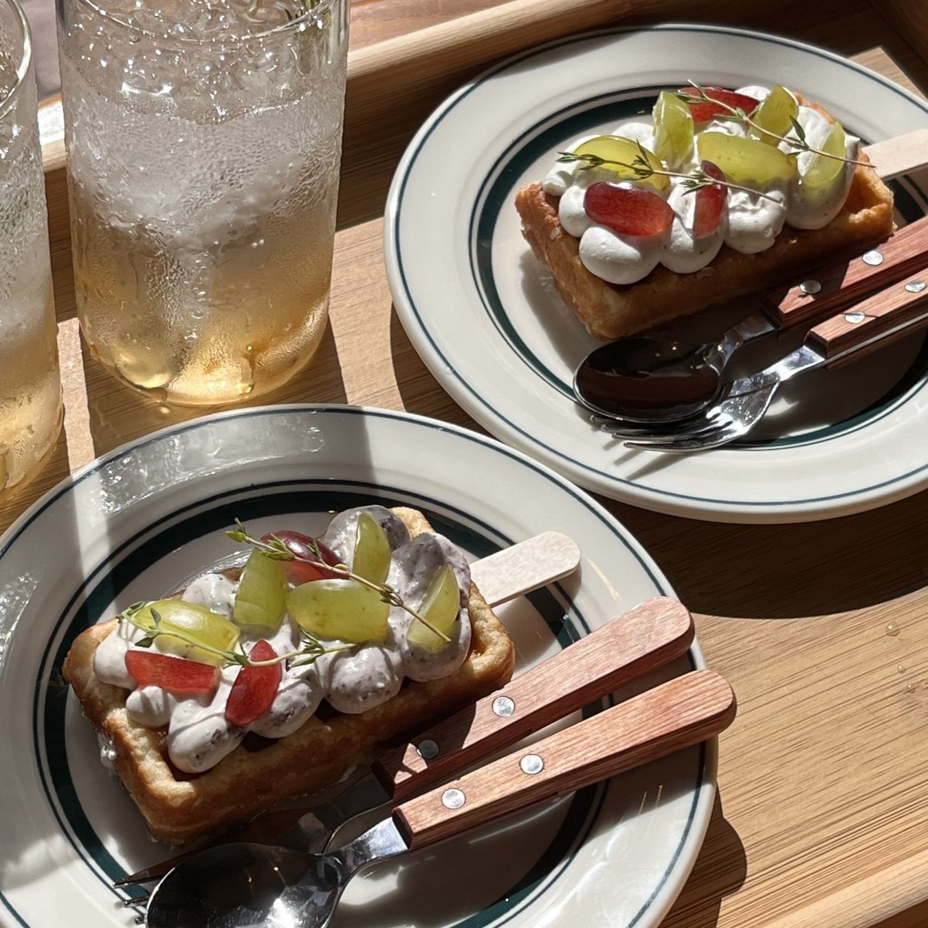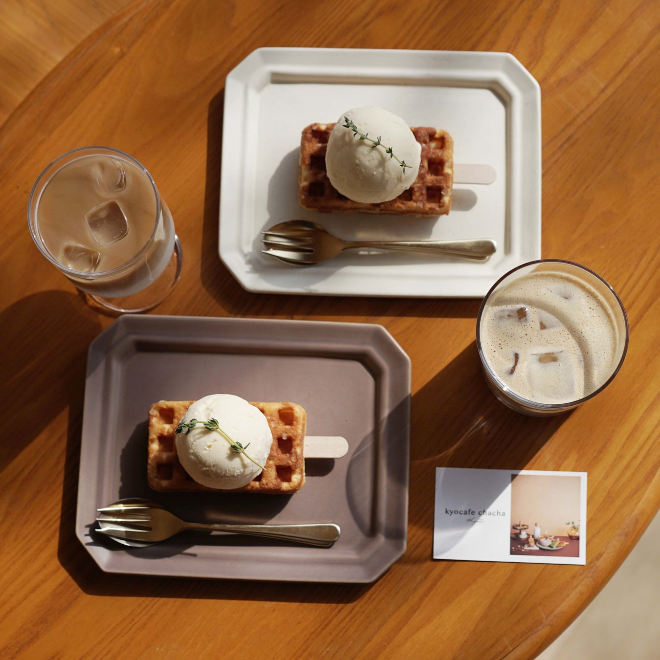 店内では、ここでしか食べられない、kyocafe chachaオリジナルの〈モーニングプレート(なくなり次第終了)〉や、カフェタイムには京ワッフルと季節のフルーツ等を使った〈こだわりのスイーツプレート〉をお楽しみいただけます。