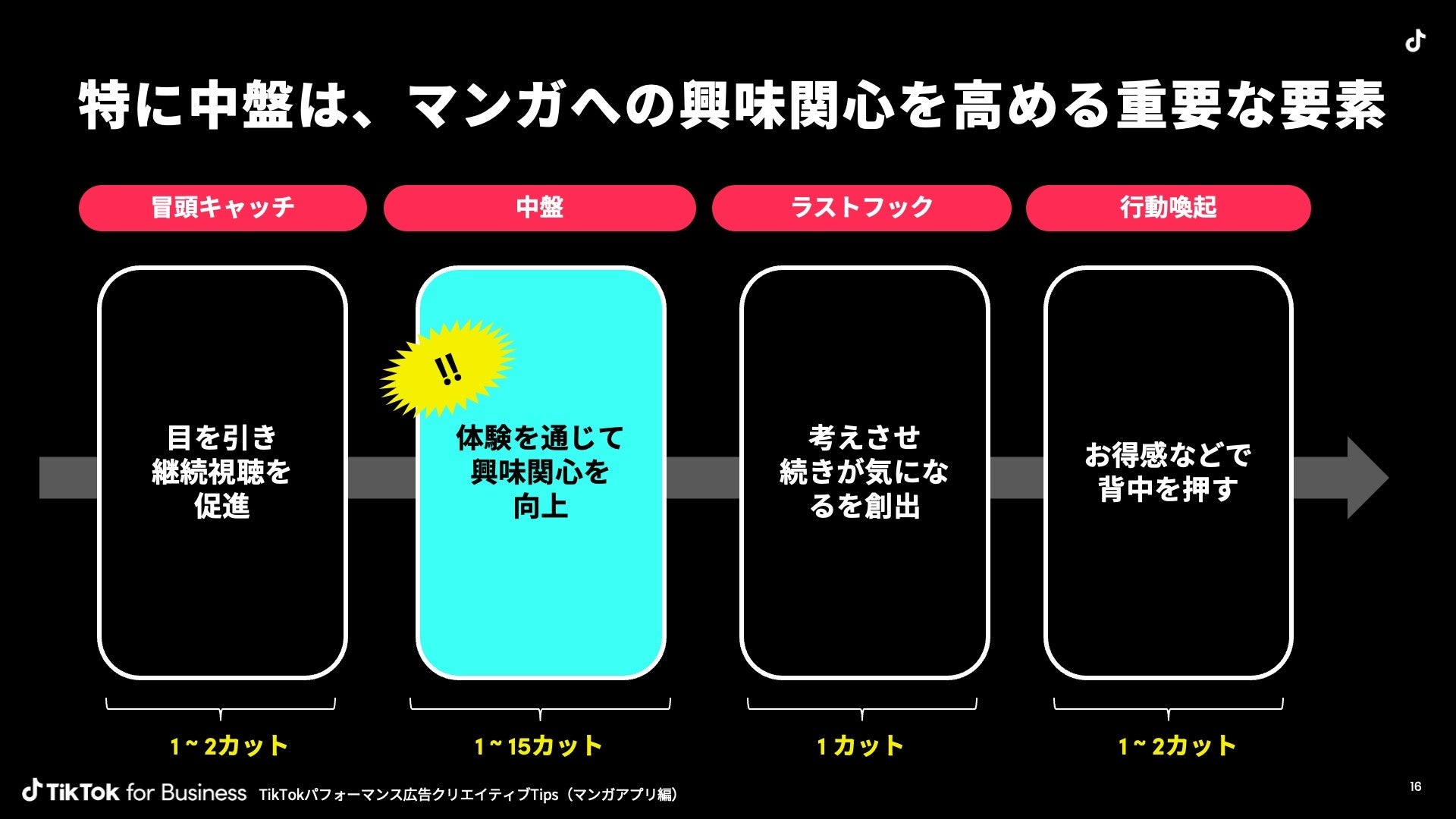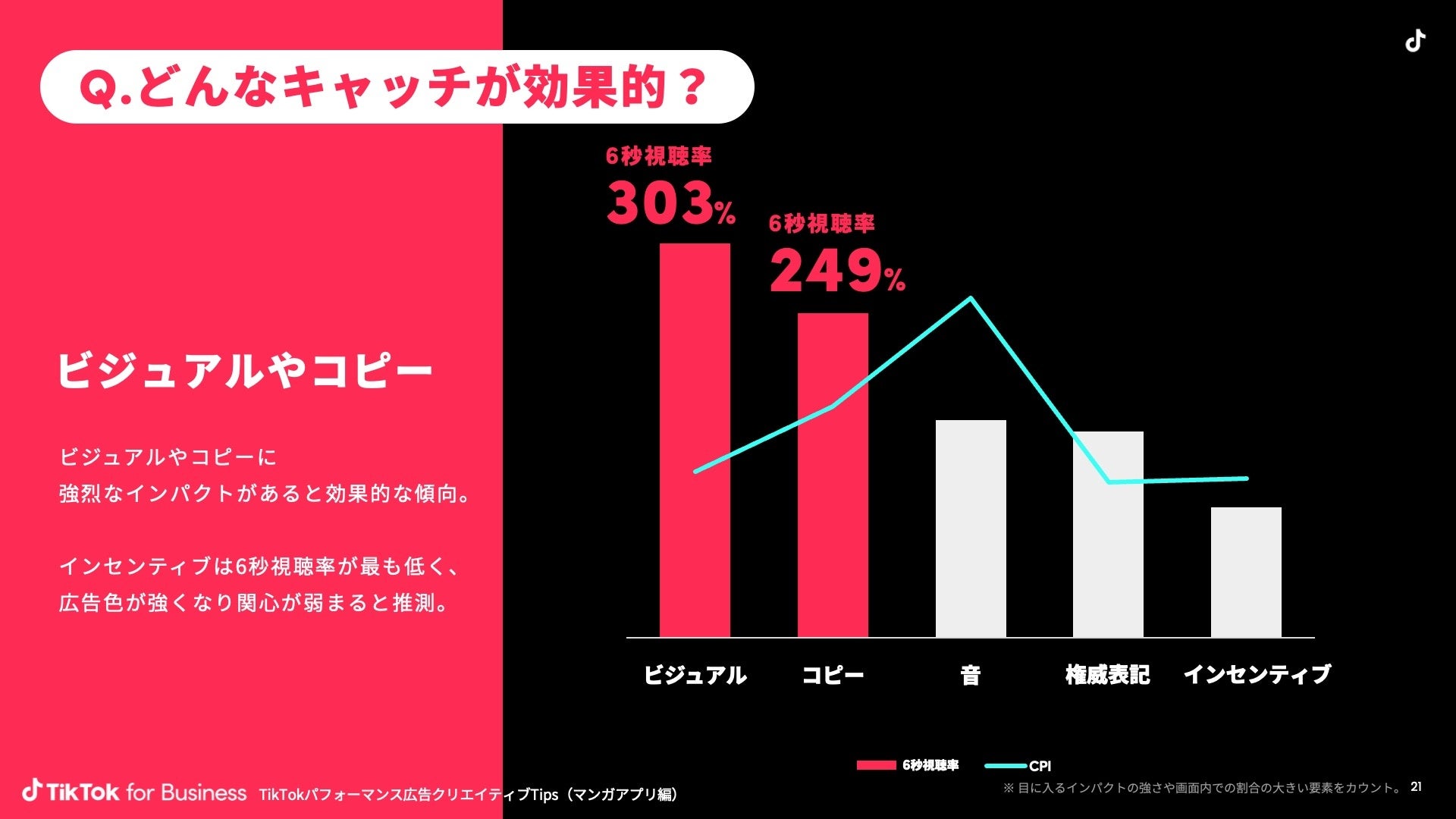 この他、ポイントごとの詳しい解説については、「TikTokパフォーマンス広告クリエイティブTips 〜マンガアプリ編〜」にまとめています。