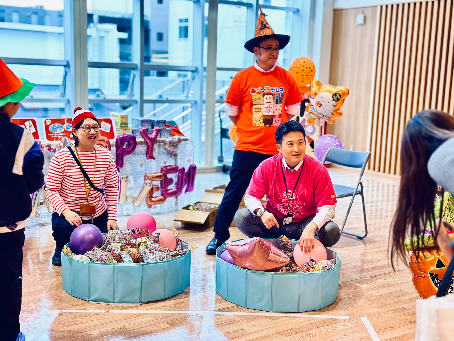 春日井製菓では2016年から子ども向けのハロウィンイベントを自社の食堂や会議室にて開催してきました。2023年には同じ西区の菓子メーカー4社に声をかけ「共に子どもたちを笑顔にしよう」と意気投合。西区役所講堂で第1回「おかしなハロウィンwith西区のなかまたち」を実施し、2024年もなごのキャンパスで同イベントを行い、地域の子どもたちに親しまれています。