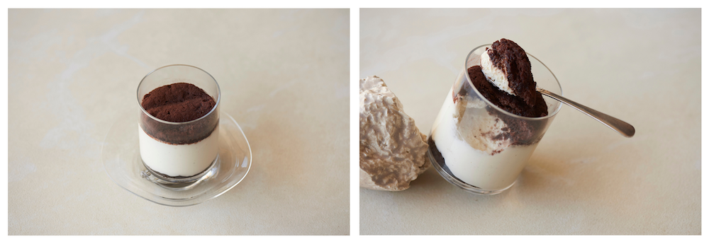 コーヒーやカカオ、ほうじ茶が生み出す香ばしい香りと、ムースのように淡い口溶けが特長のティラミスをカップにしました。すぐにお召し上がりいただけるように、イタリアンメレンゲの量を調整することで、ほんのり感じる甘味はそのままに、口の中に少し長くとどまる食感とコクに仕上げました。