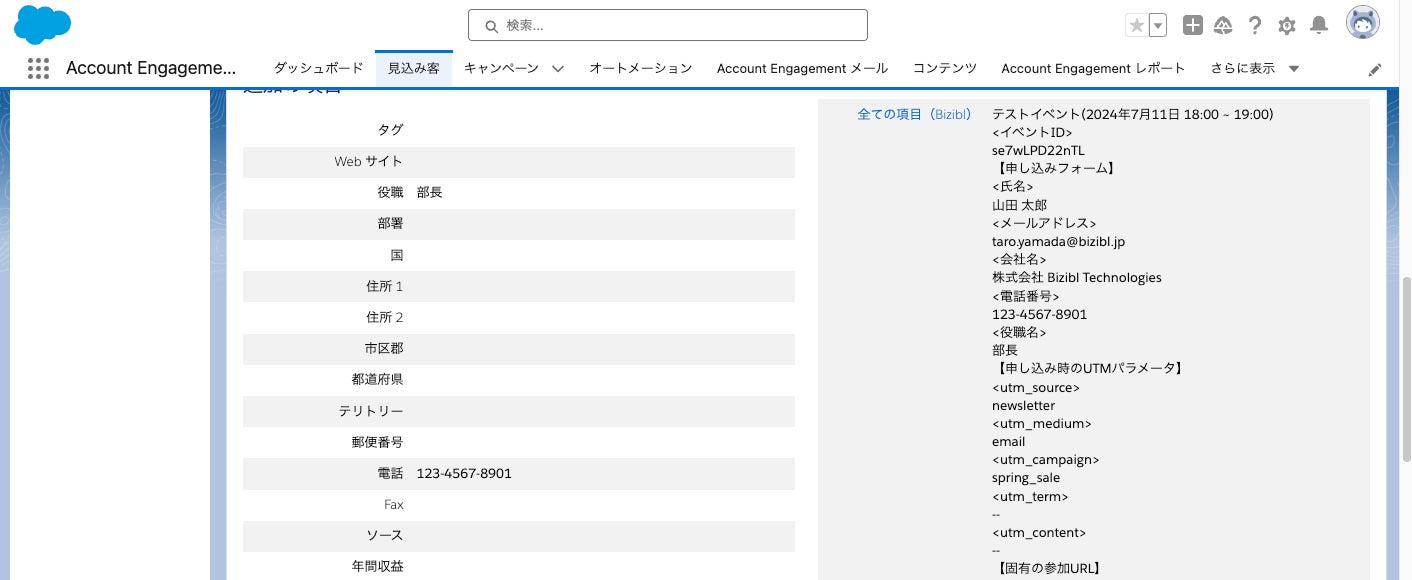 ・Account Engagement:Biziblで連携している「全ての項目」に紐づく項目の中に入ります