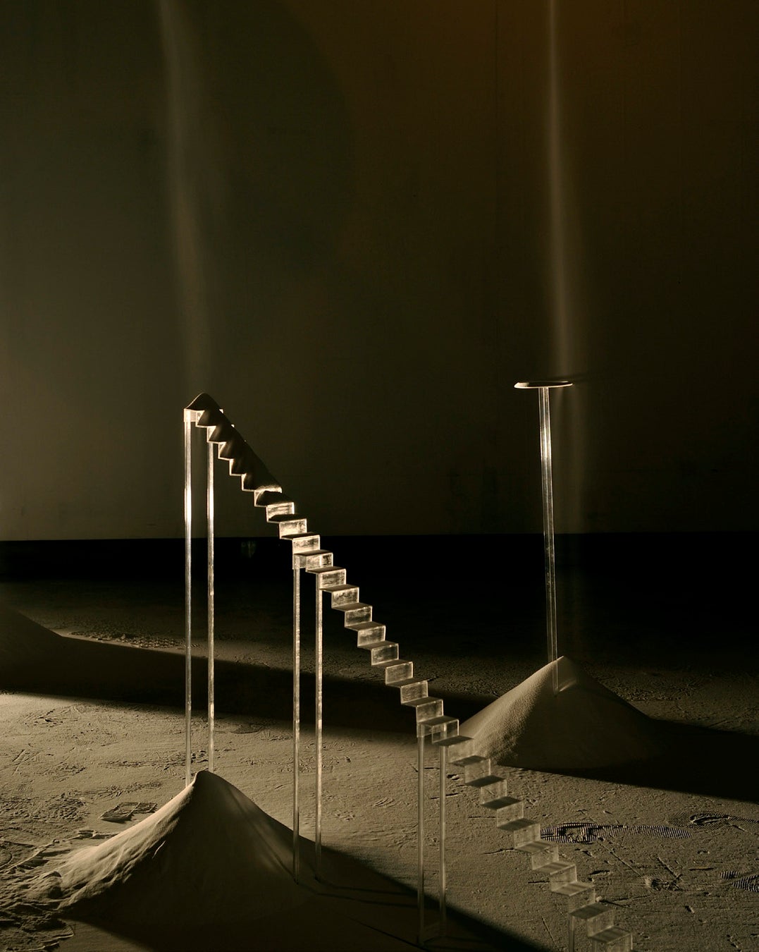 インスタレーションの手法を用いて、内海昭子は時間性を内包するイメージの空間を生成してきた。内海は作品を通して鑑賞者の知覚や経験に緩やかに介入し、現在と接合された過去や未来の時間を想起することを促す風景を創出する。