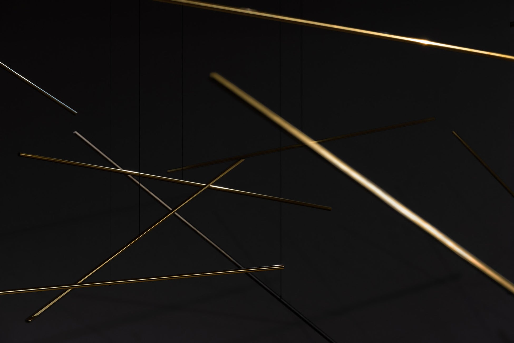 本パビリオンで内海は「音」と「連鎖」に焦点を当て、長短様々な金属棒が回転し、連鎖的に触れ合うことで空間に鳴り響く音が紡ぎ出されるインスタレーションを制作する。古来、朝鮮では訴えの際に楽器などを使って音を発し、自らの声に人々の意識を向かせたという。そうした声は時間と空間を超越して集合的な連なりを形成することで、時に大きな物事を動かす原動力となった。その一方、聴き取られなかった無数の声は暴力の連鎖の只中でかき消され、「恨」の連鎖となって歴史の地層のなかにひっそりと堆積した。本作を通して内海が表象するのは、歴史における「音」と「連鎖」の両義的で、簡単には言い表すことのできない側面である。