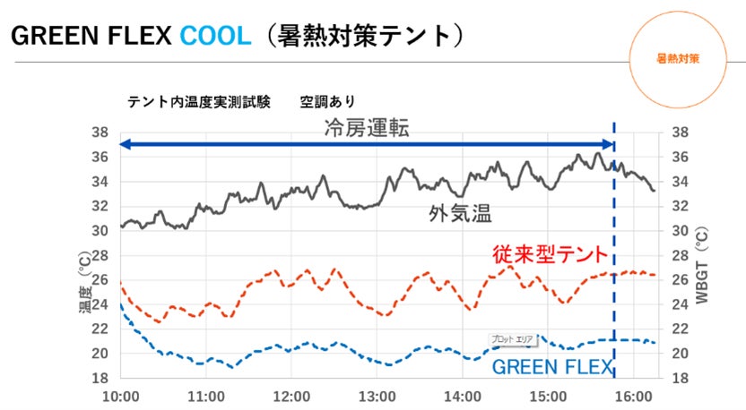 大型膜面構造物(テント構造物)や土木・物流資材などを手がける太陽工業株式会社(東京本社:東京都世田谷区/大阪本社:大阪市淀川区、代表取締役社長:能村 祐己)はこのたび、日本赤十字看護大学附属災害救護研究所(以下、日赤災害救護研)と共同で、人道支援活動における課題解決を目的とした次世代型 テント「GREEN FLEX(グリーンフレックス)」を開発しました。本製品は、従来の大型テントと比較して半数以下の人員で設営可能な構造を実現したほか、テント内の温度変化を抑制し、快適な居住環境の確保にも対応しています。