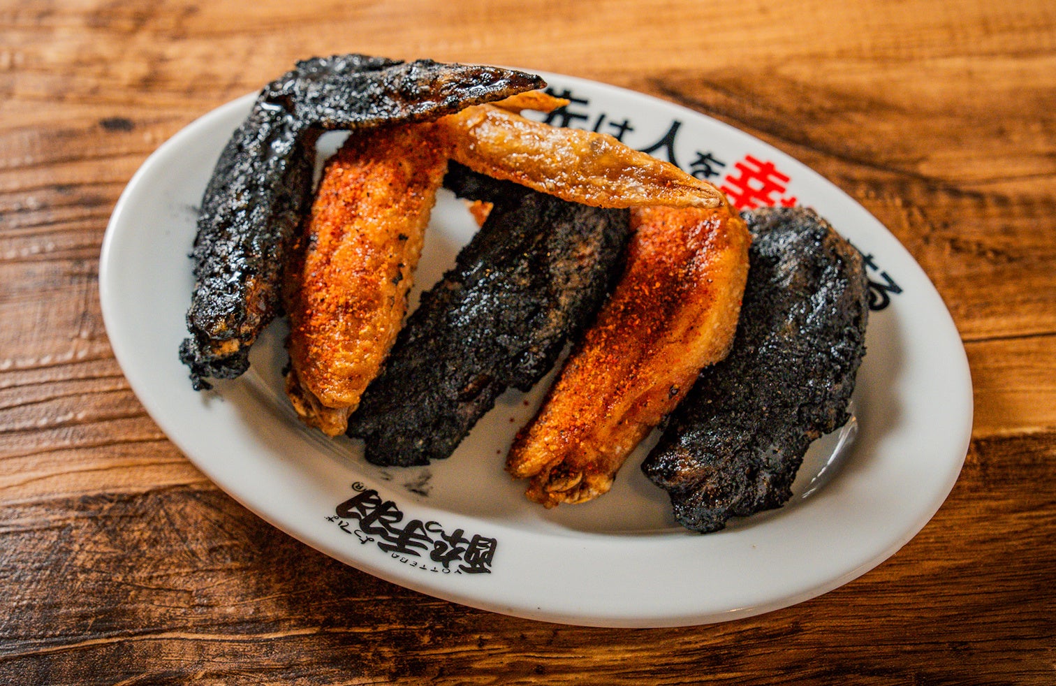 真っ黒な姿にスパイシーな旨味を閉じ込めた特製フレーバーが誕生。見た目のインパクトと手羽先本来の旨味が最高にマッチ!写真映え間違いなしの一皿に仕上げました。さらに激辛の“赤手羽先”と合わせた2色セットもご用意しました。