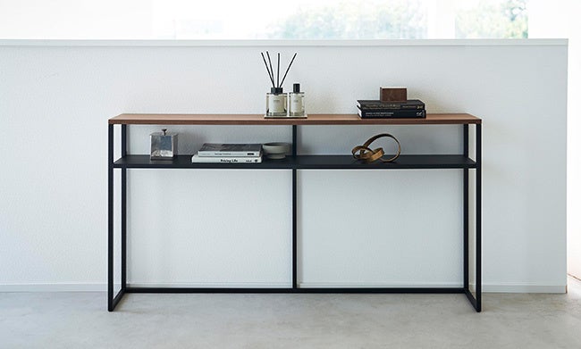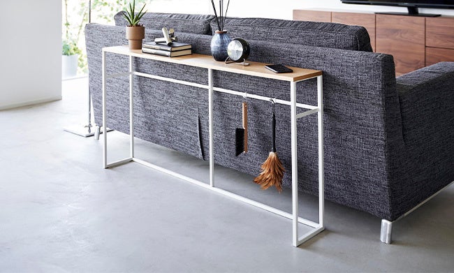 ソファー裏のデッドスペースを有効活用できるスリムでワイドなコンソールテーブル。